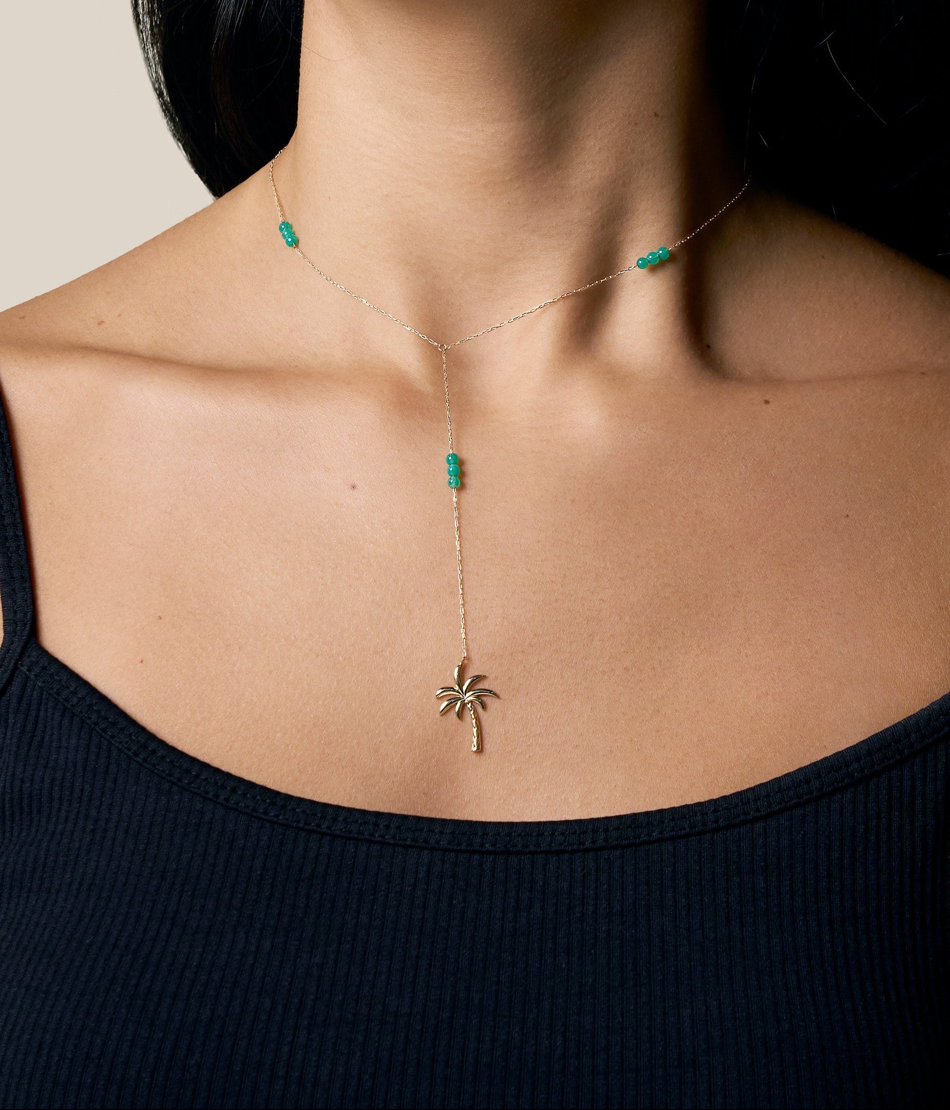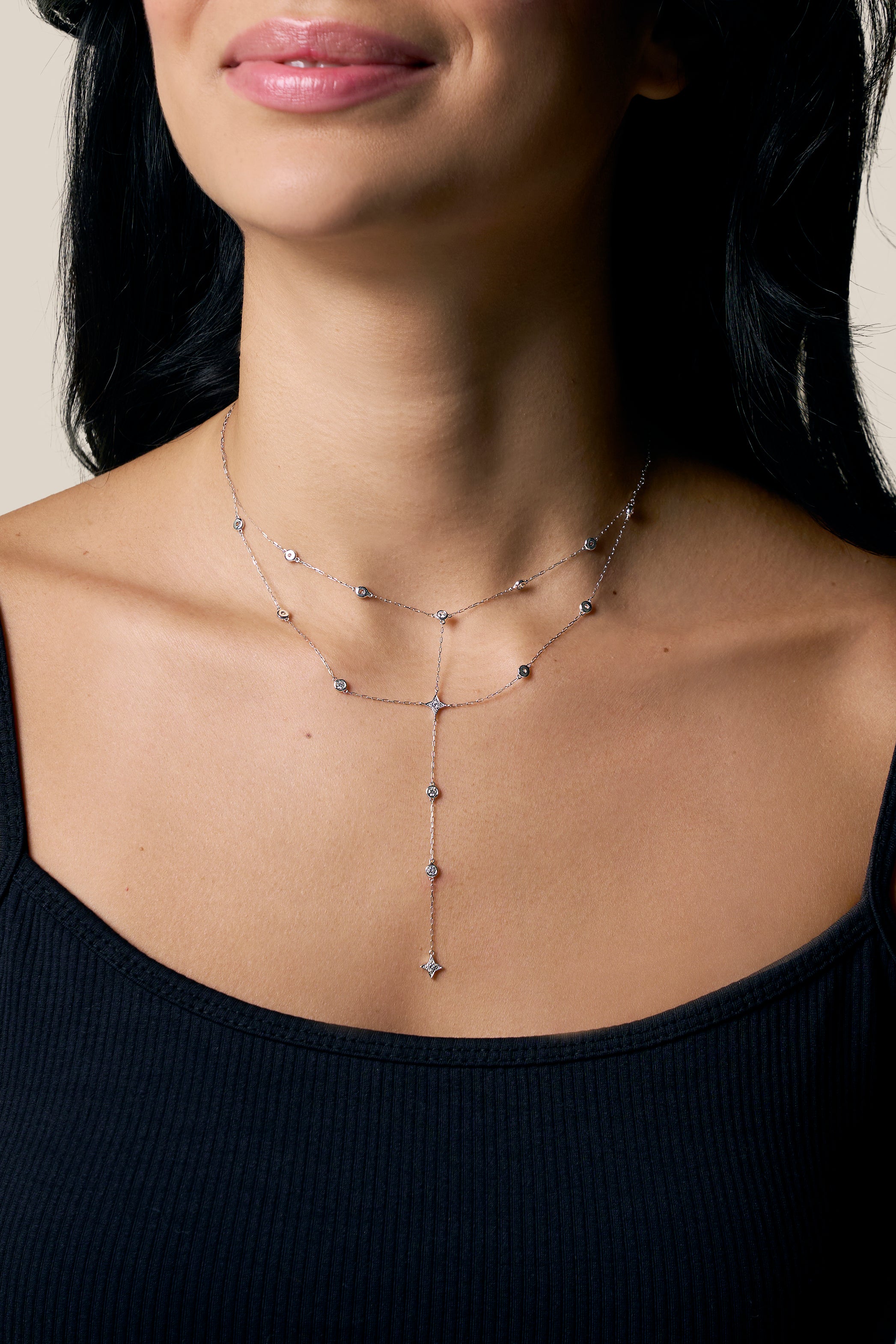 Grey Stars Long Necklace - Yellow Gold