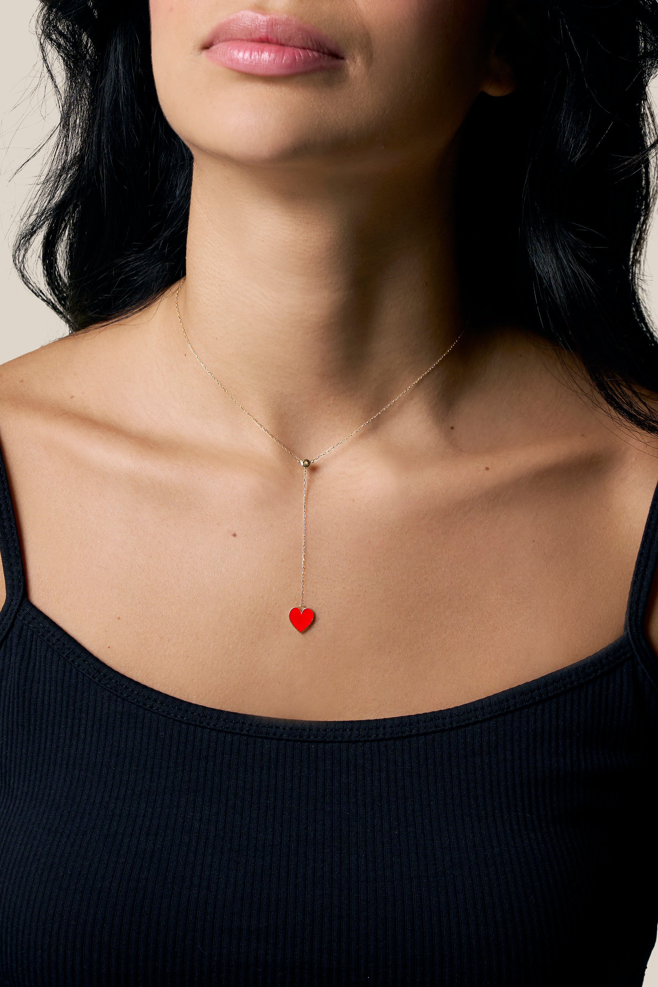 White Hearts Long Necklace - Yellow Gold