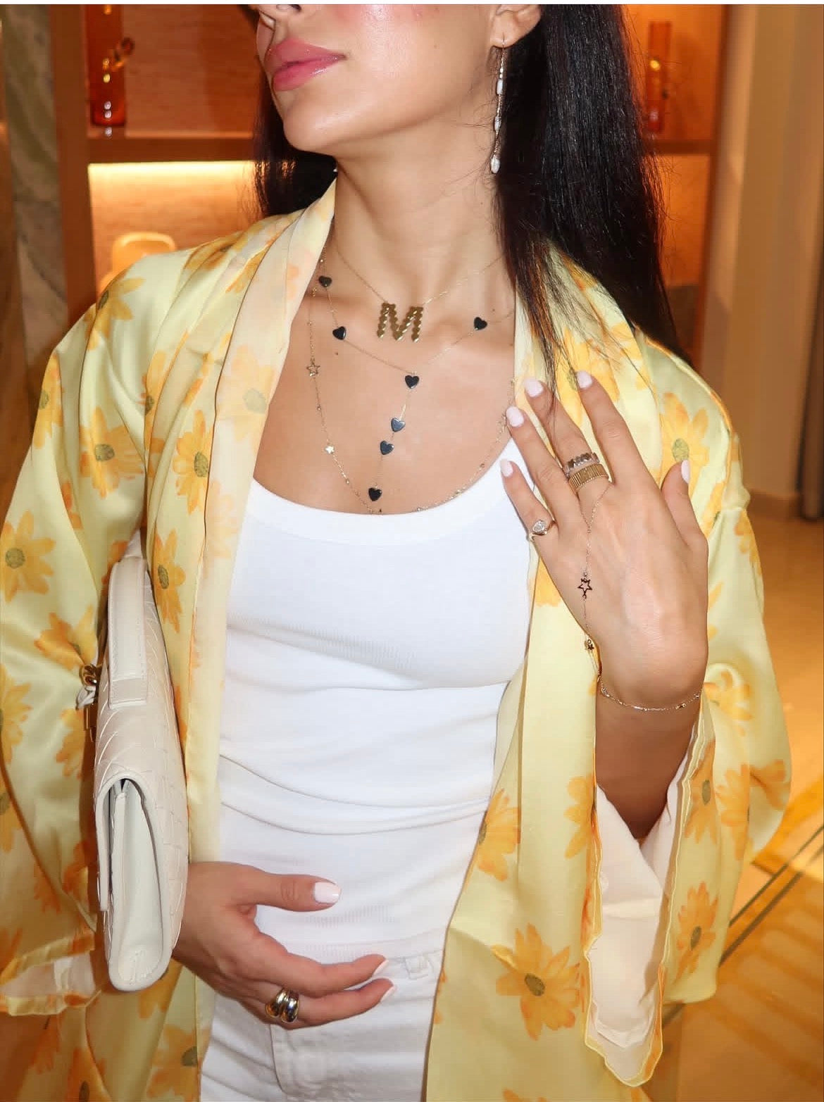 White Stars Long Necklace - Yellow Gold