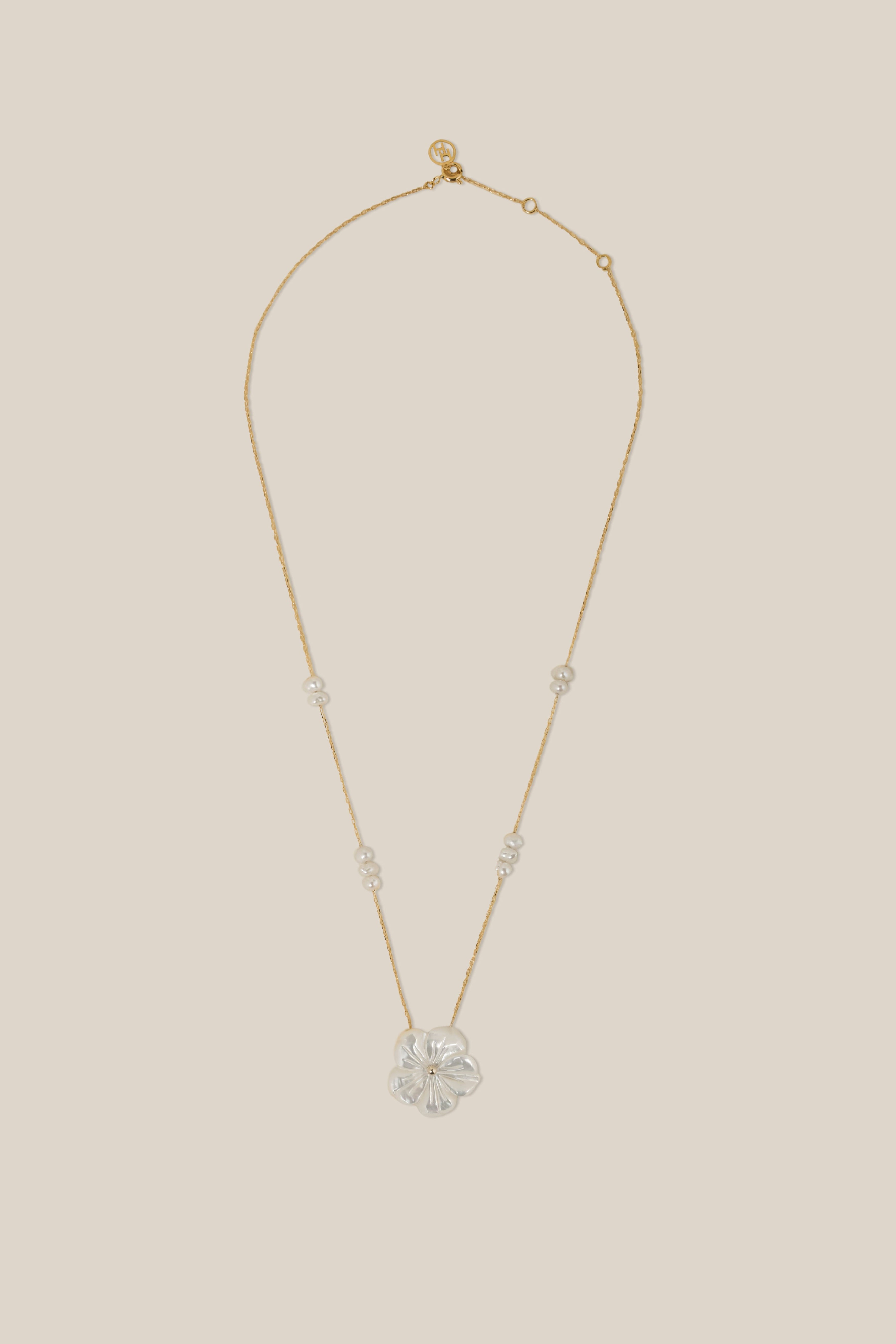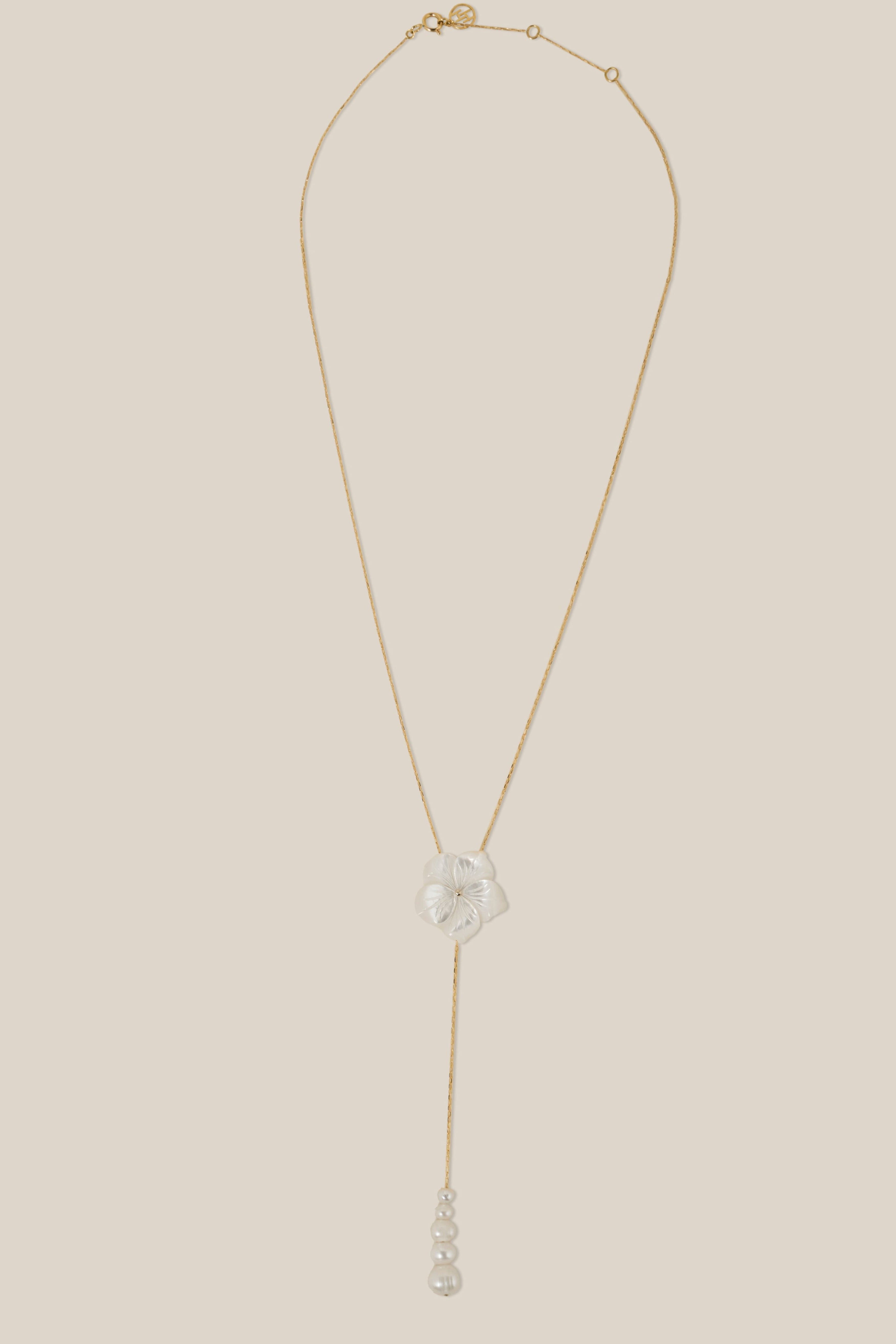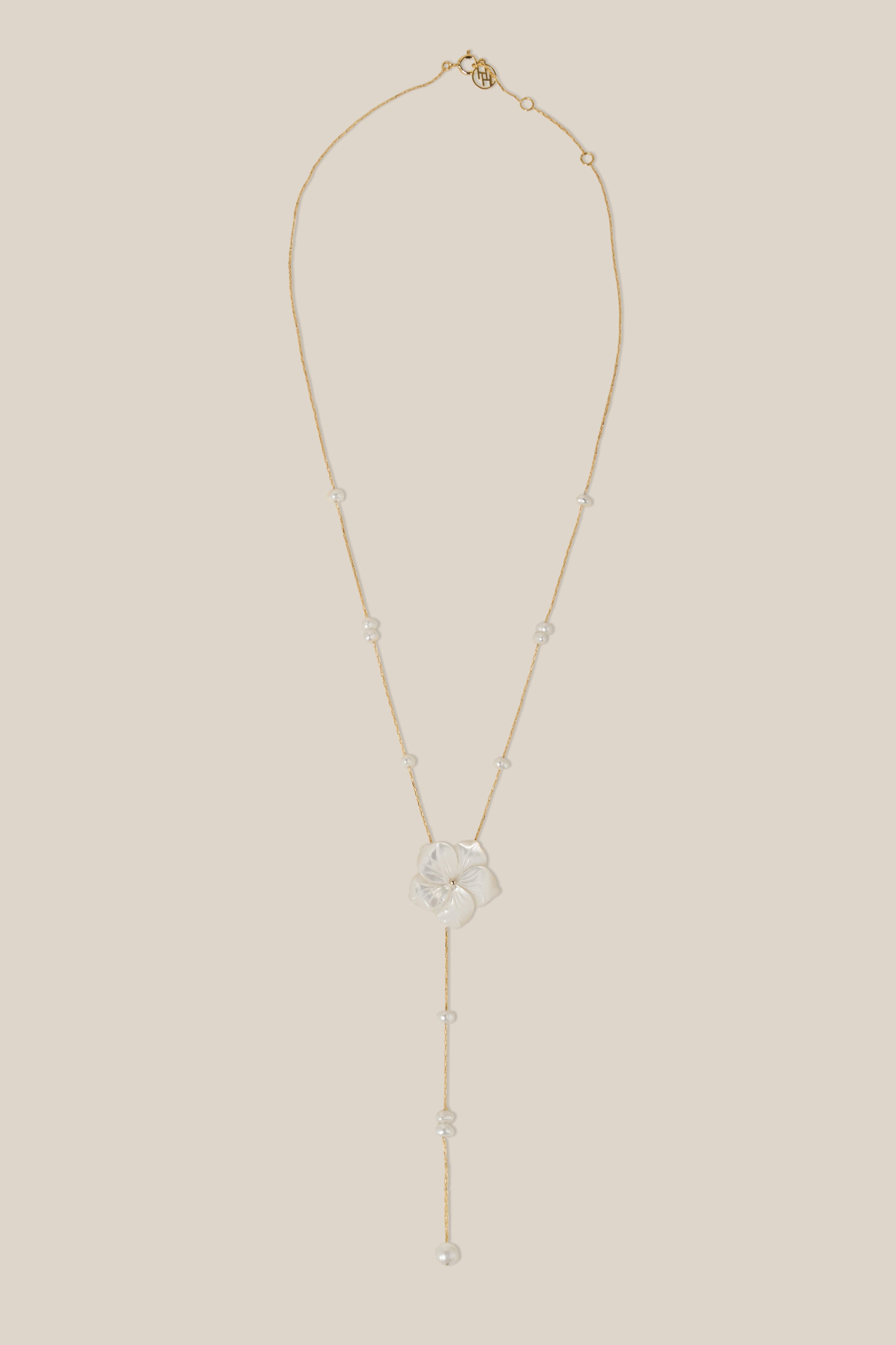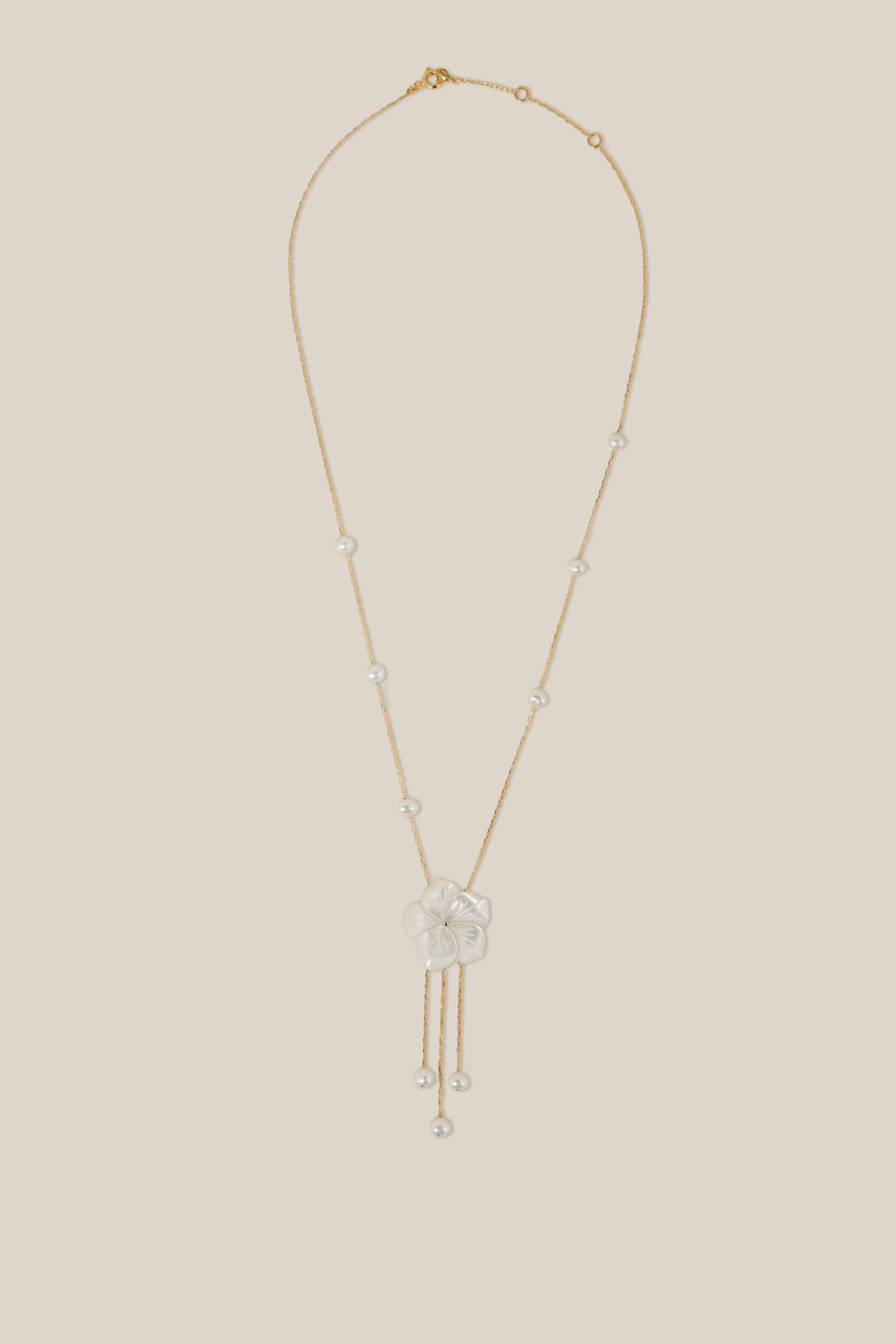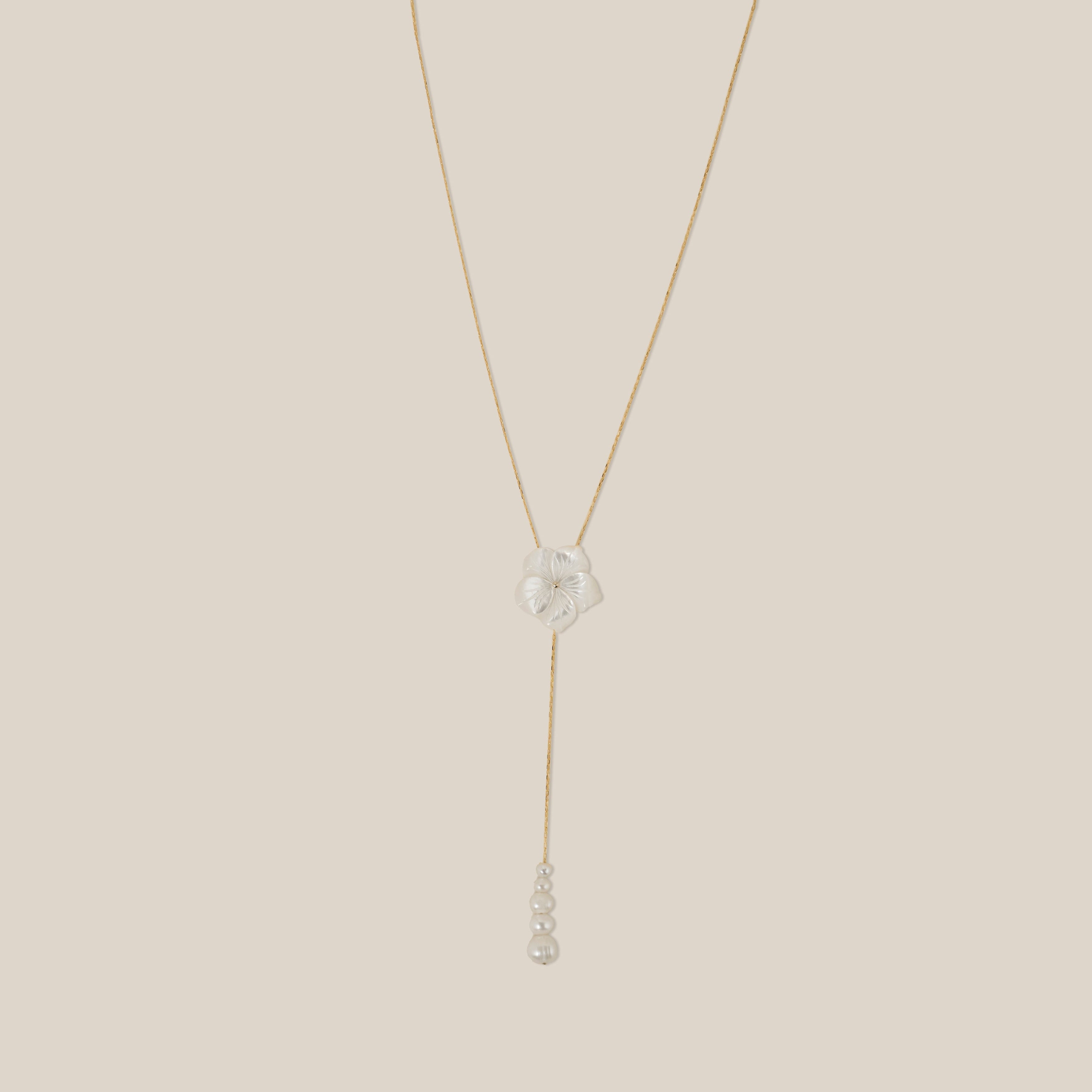 Bloom and Pearl Dangling Necklace - Yellow Gold