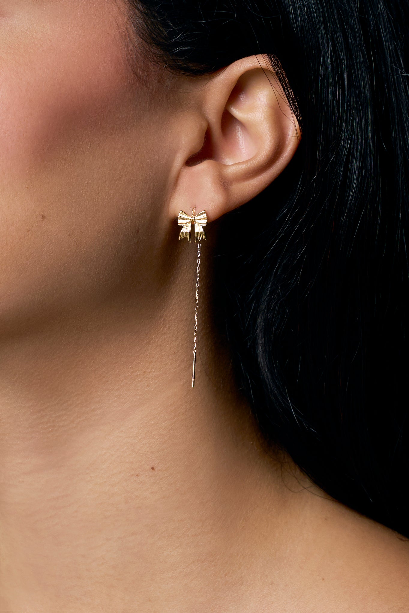 Bow Long Earring - Yellow Gold