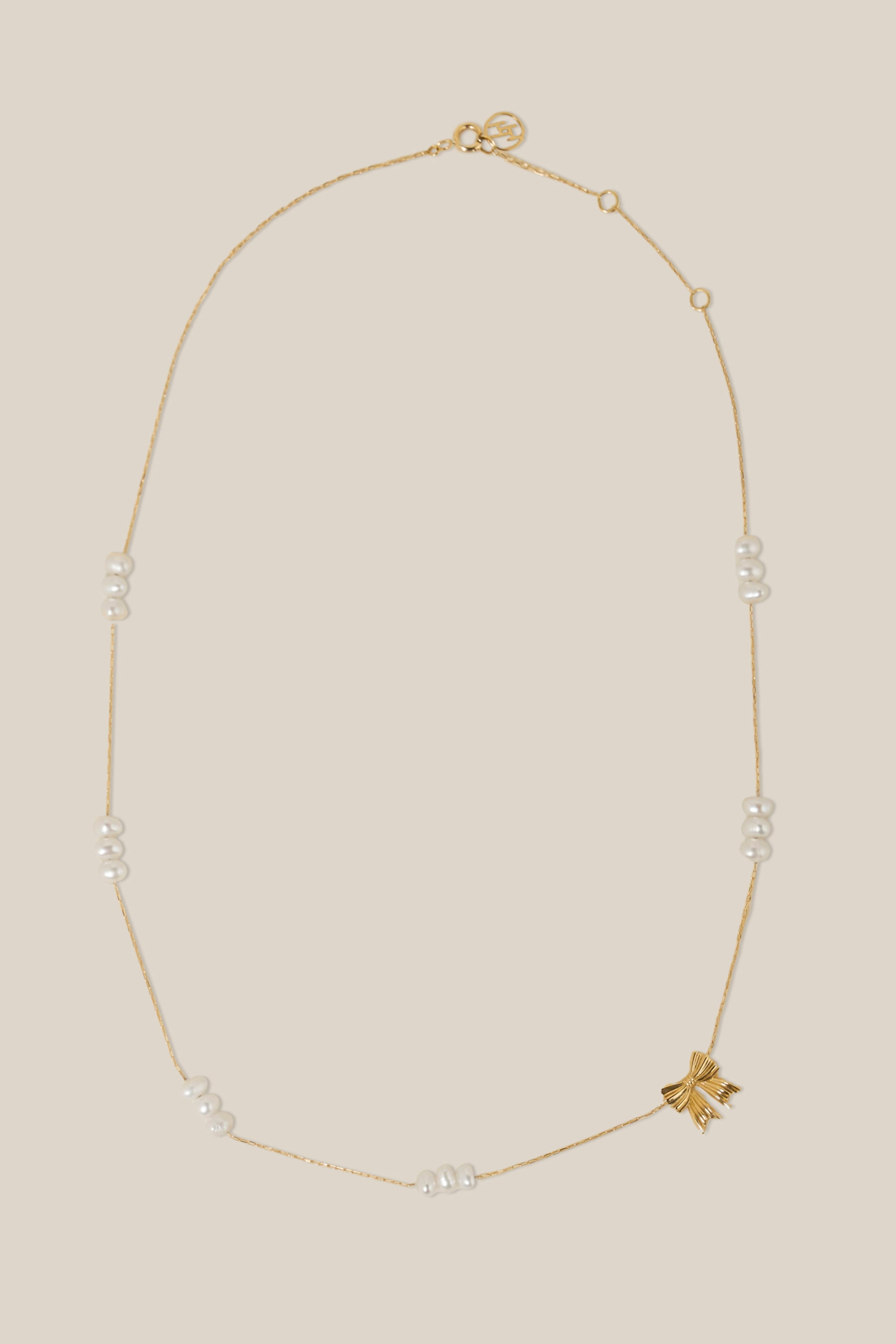 Bow and Pearl Choker - Yellow Gold