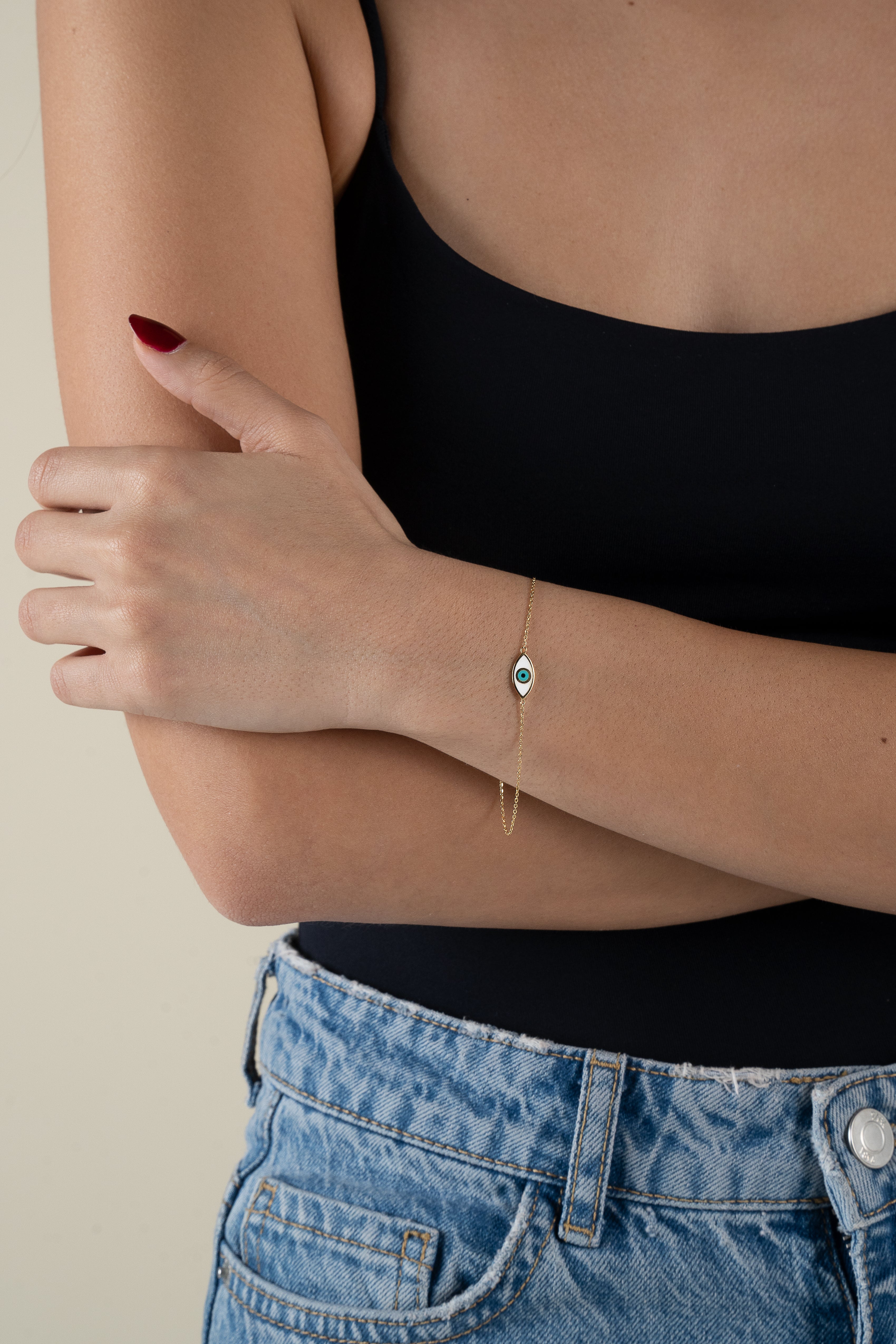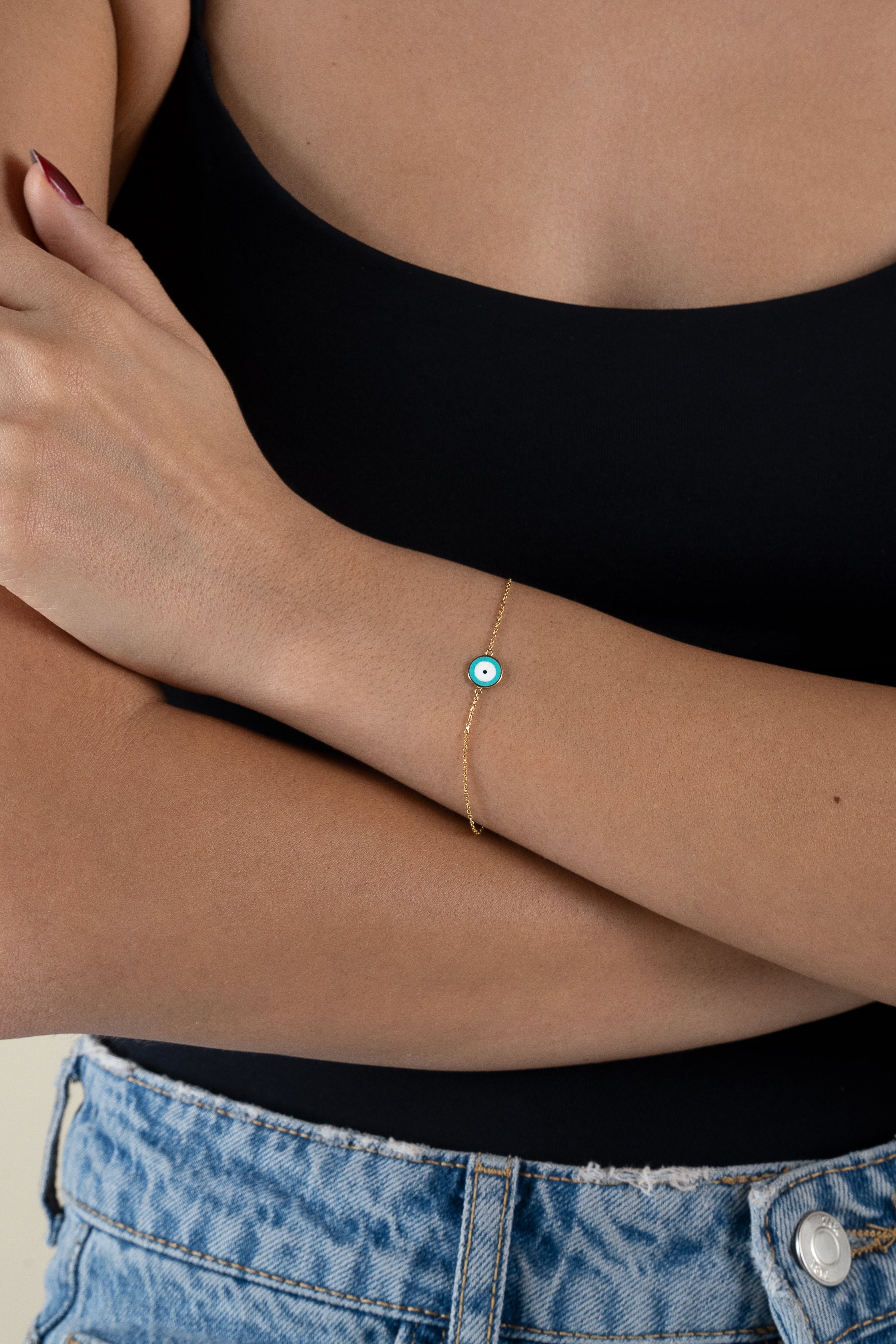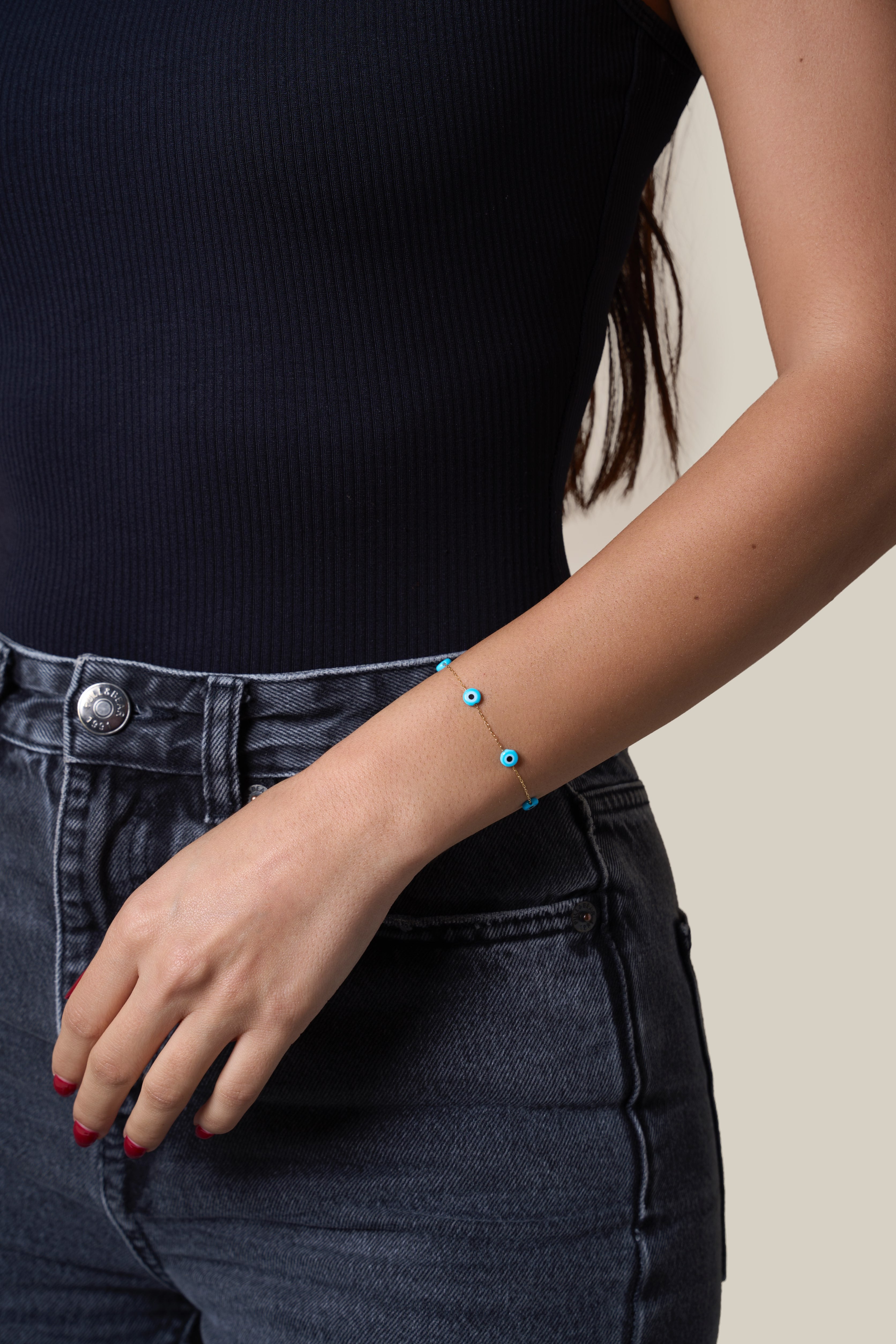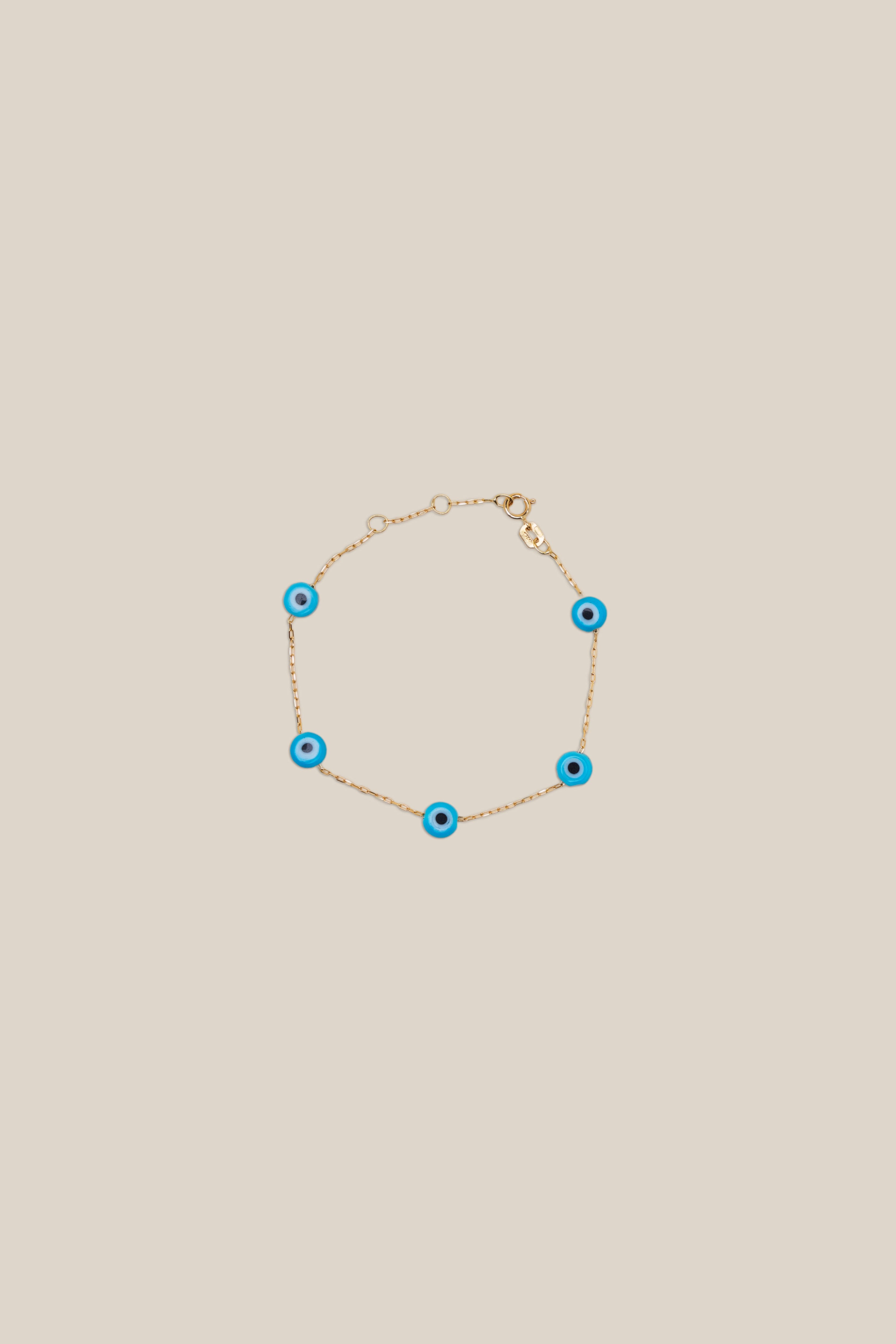 Enamel round Blue Eye Bracelet - Yellow Gold