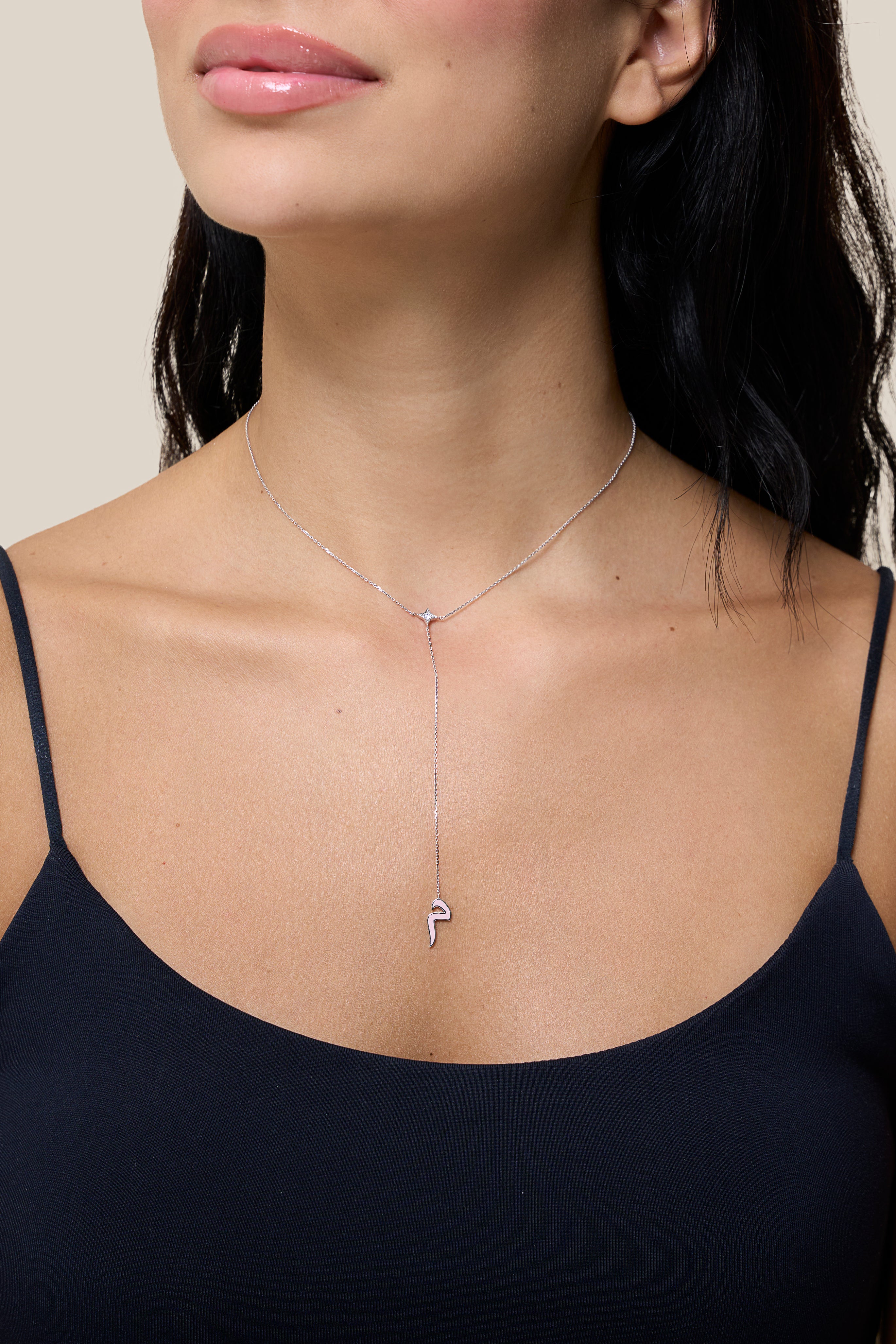 Enamel Initial and Zircon Necklace