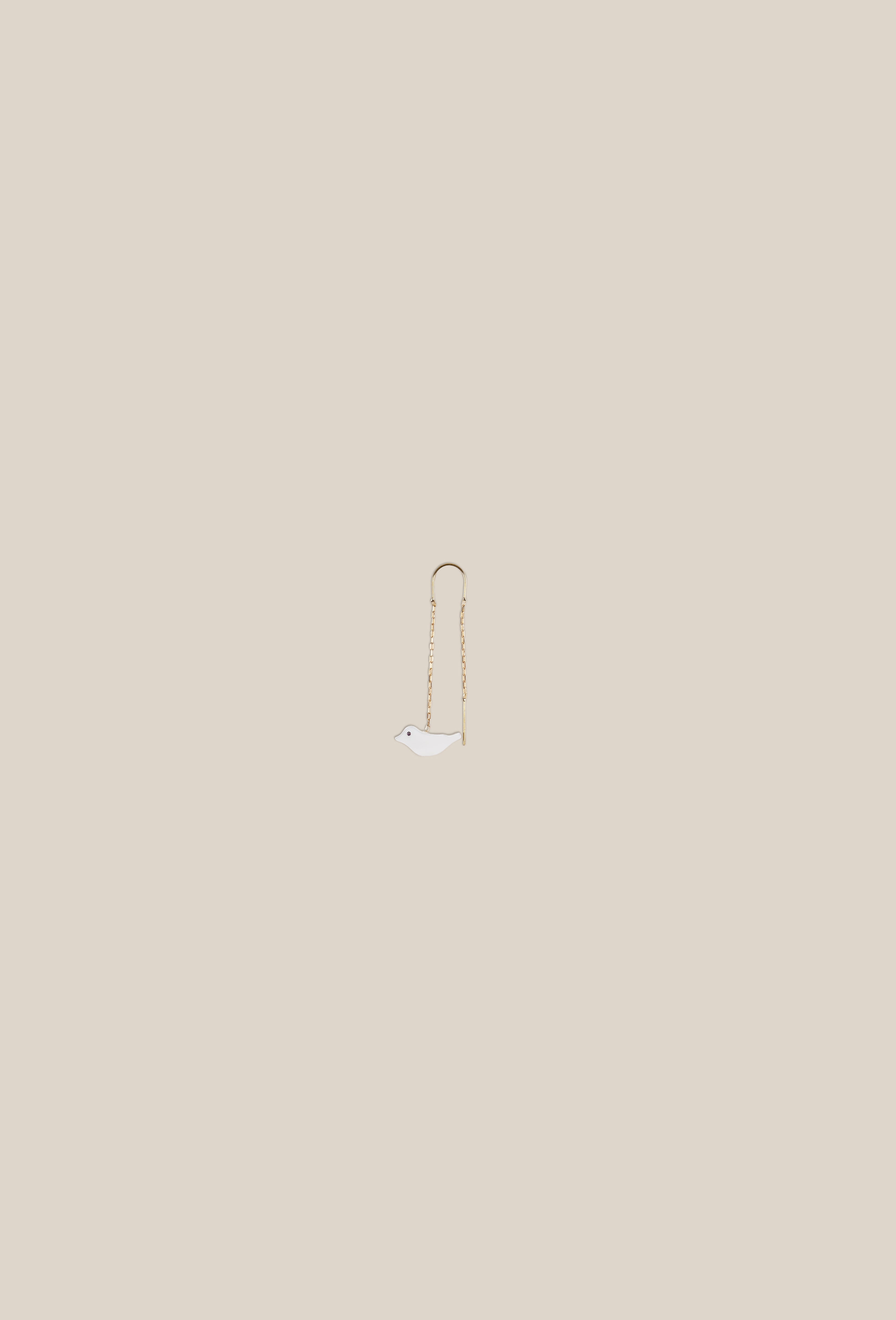 enamal White Eye Circle Chain Earring - Yellow Gold