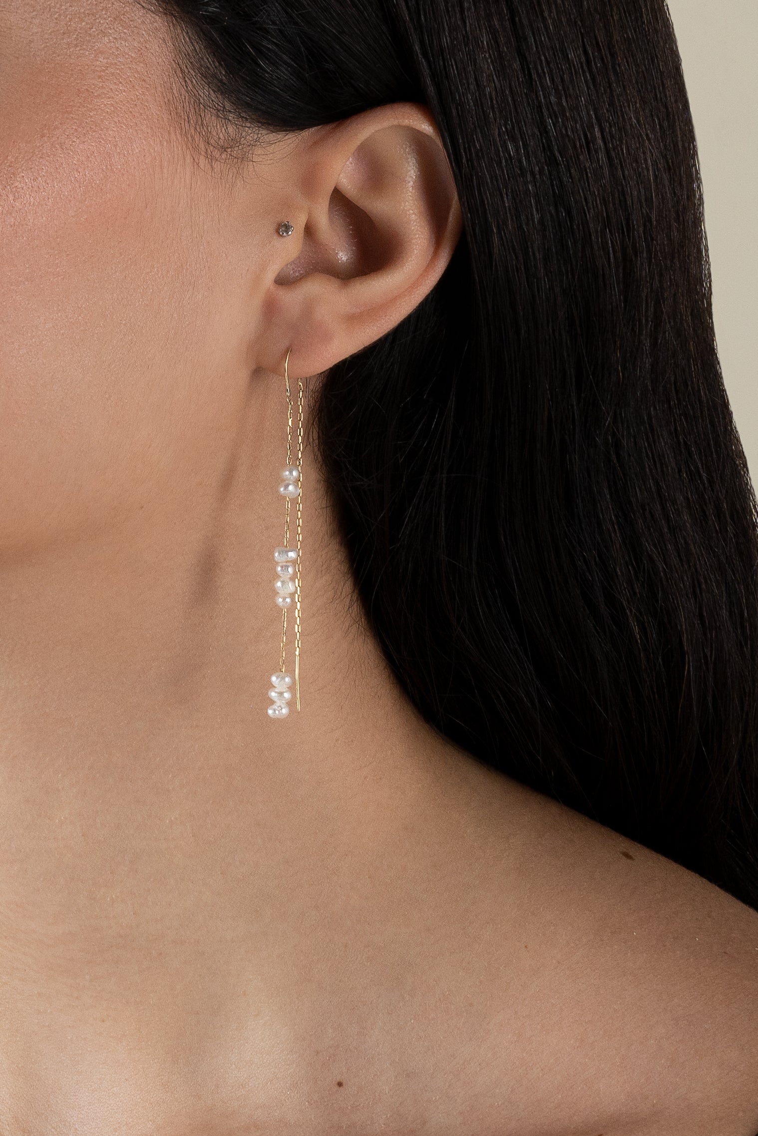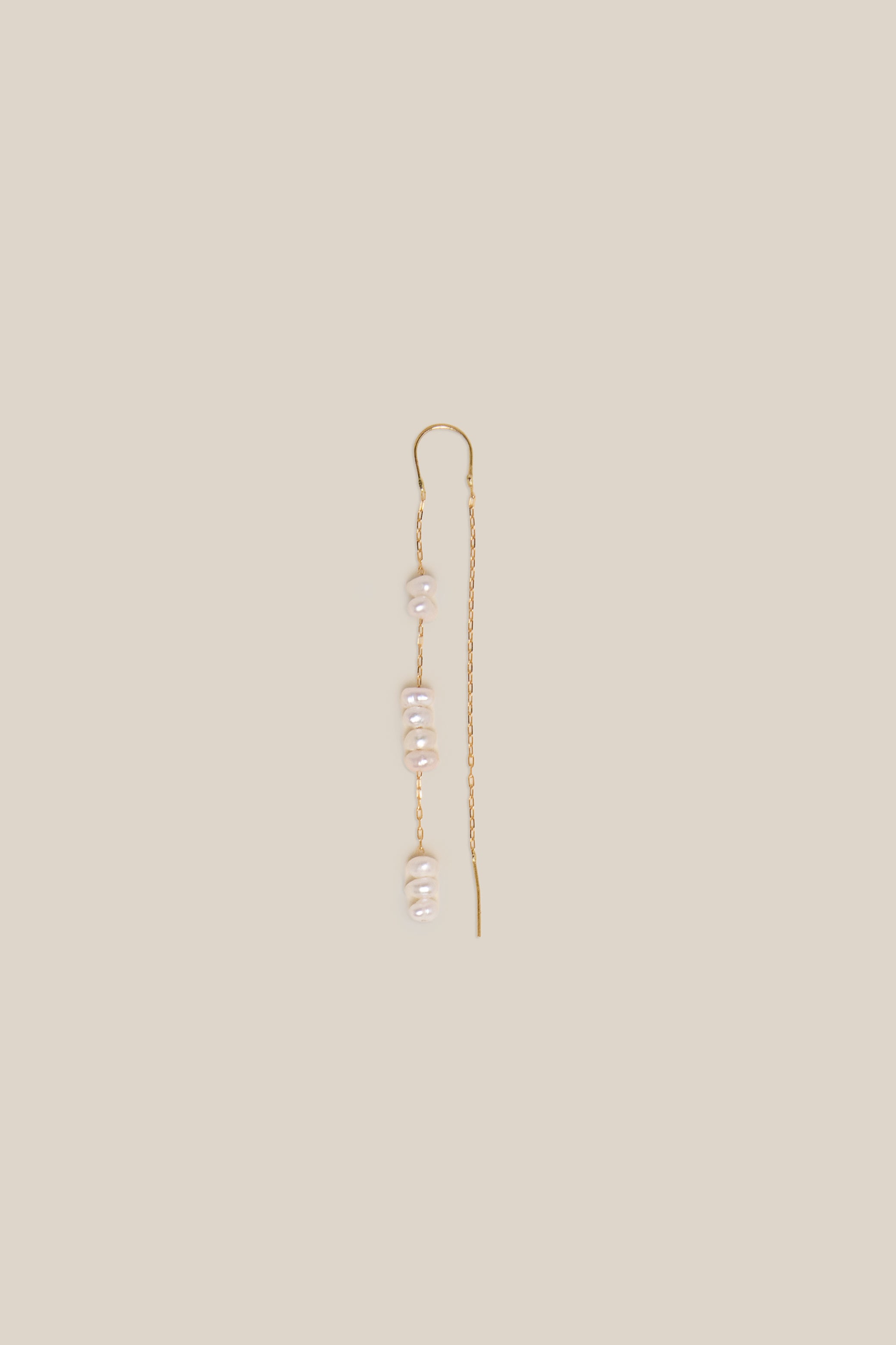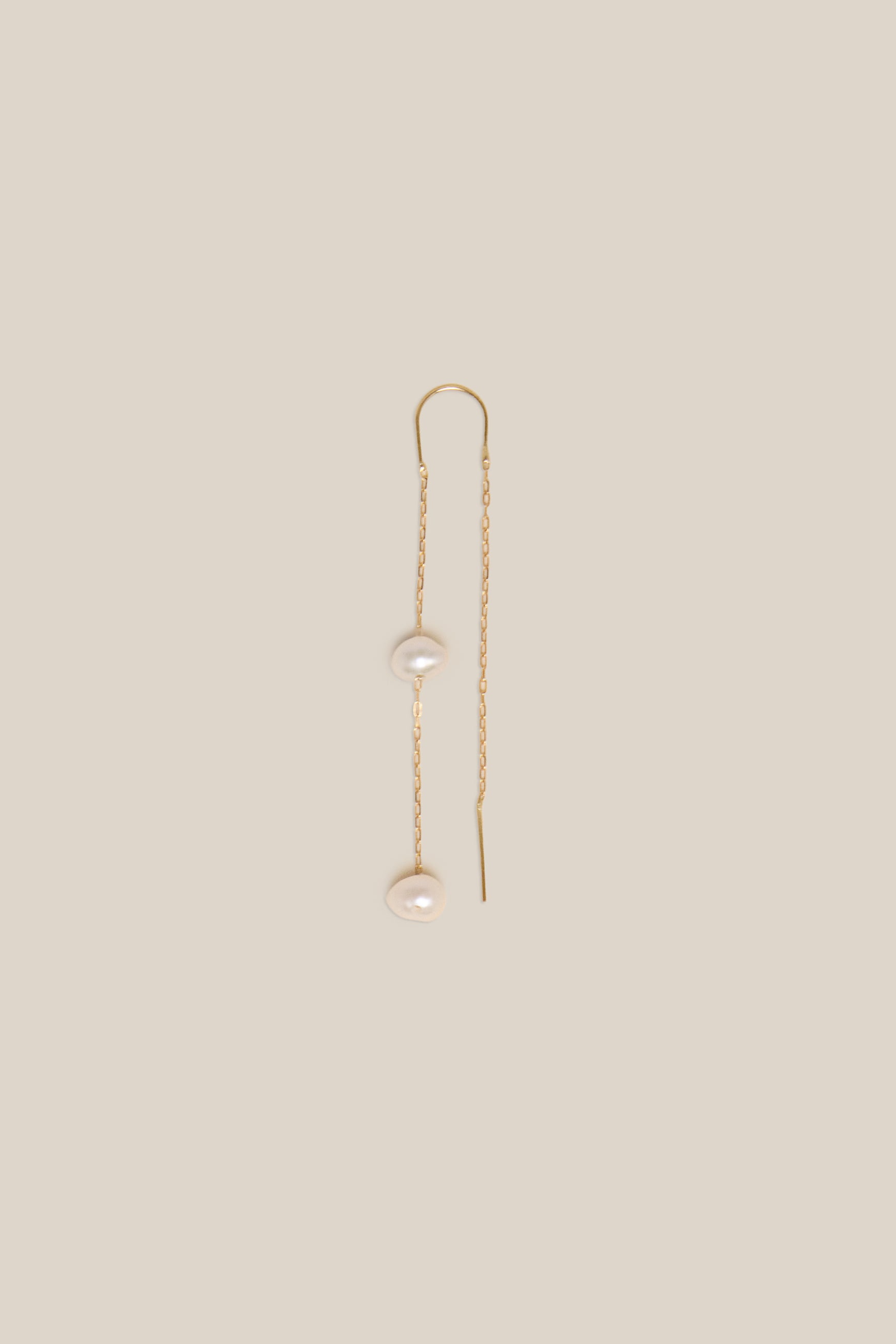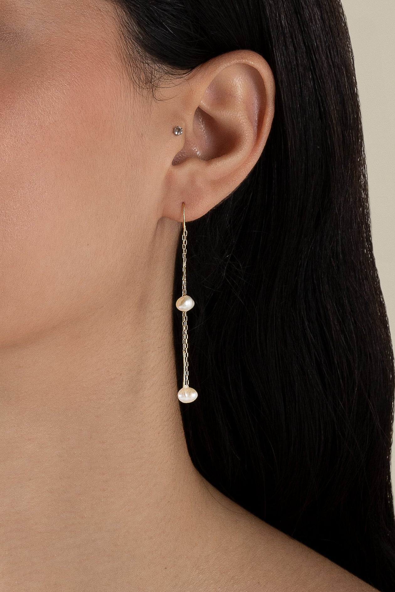 Two Grey Stars & Two Pearls Earring - Yellow Gold