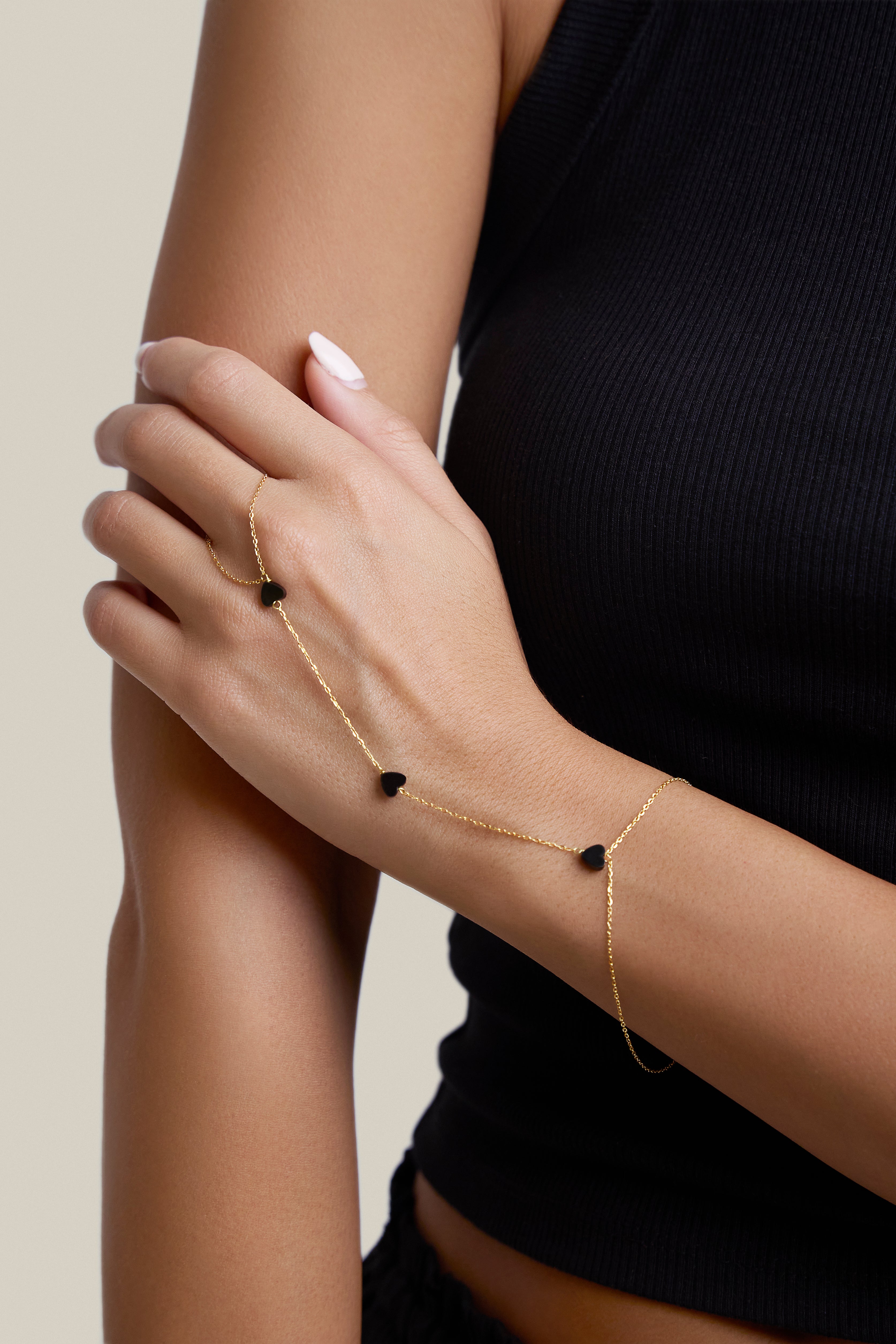 Grey Hearts Hand Chain - Yellow Gold