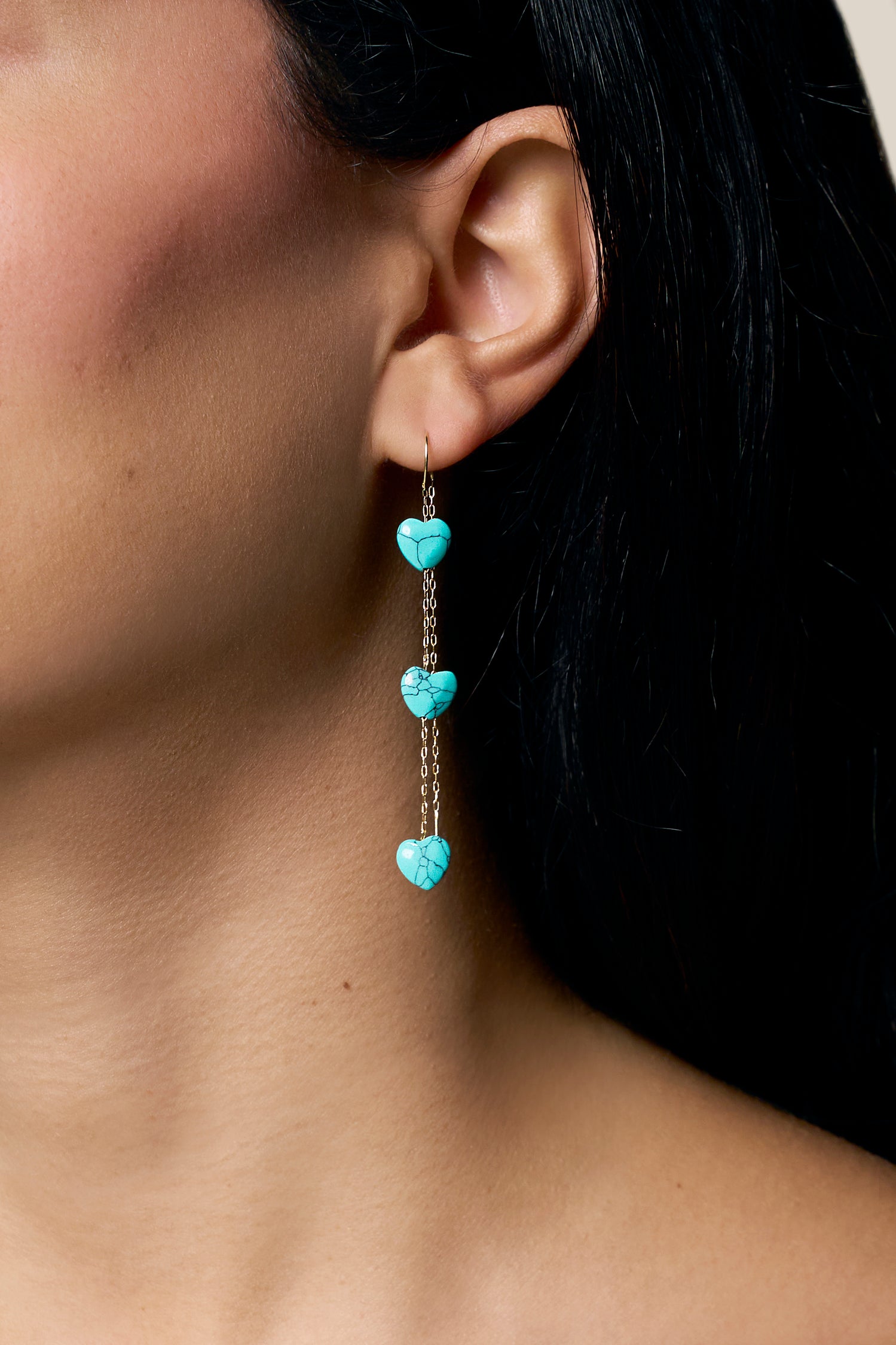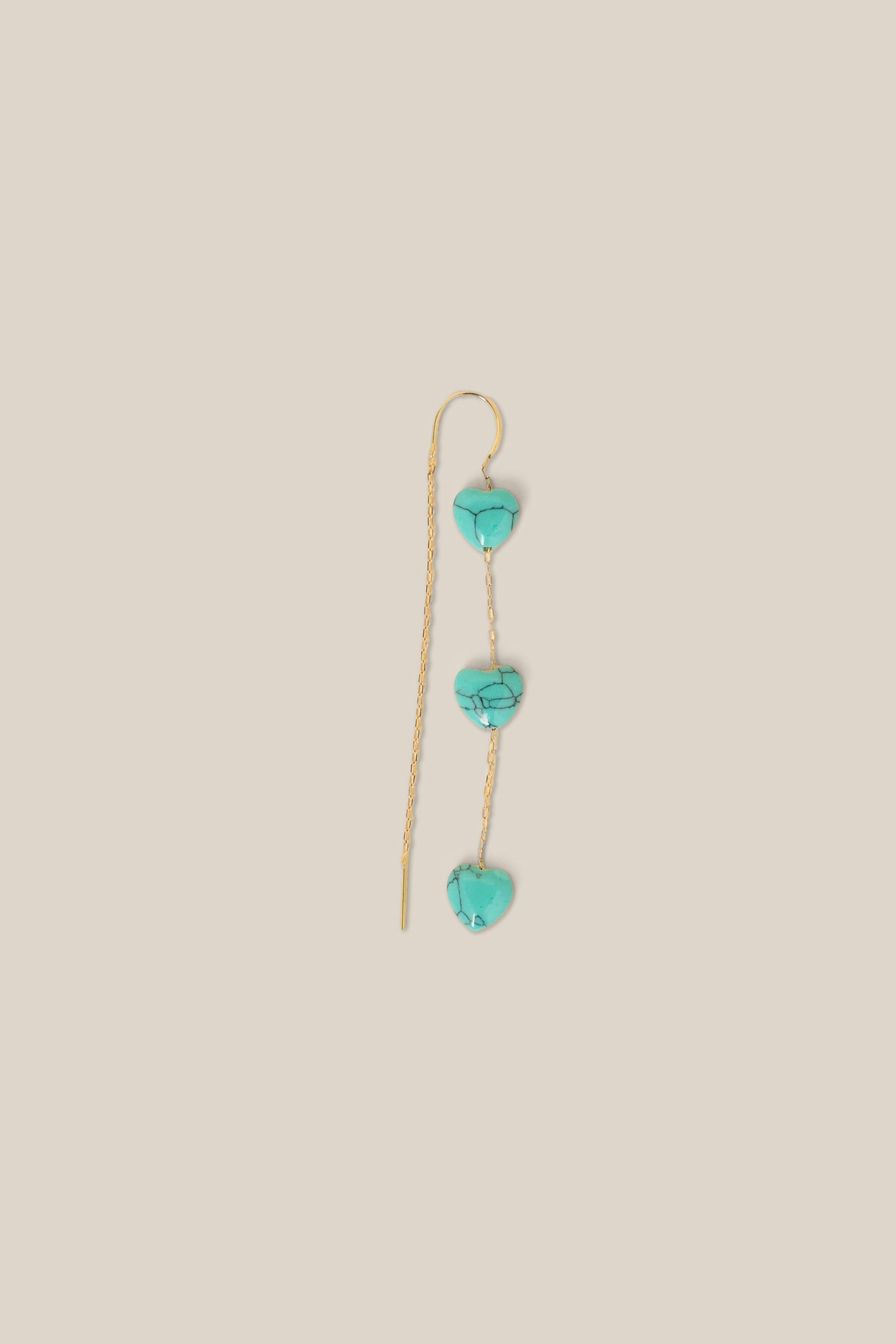 Three Aqua Hearts Earring - Yellow Gold