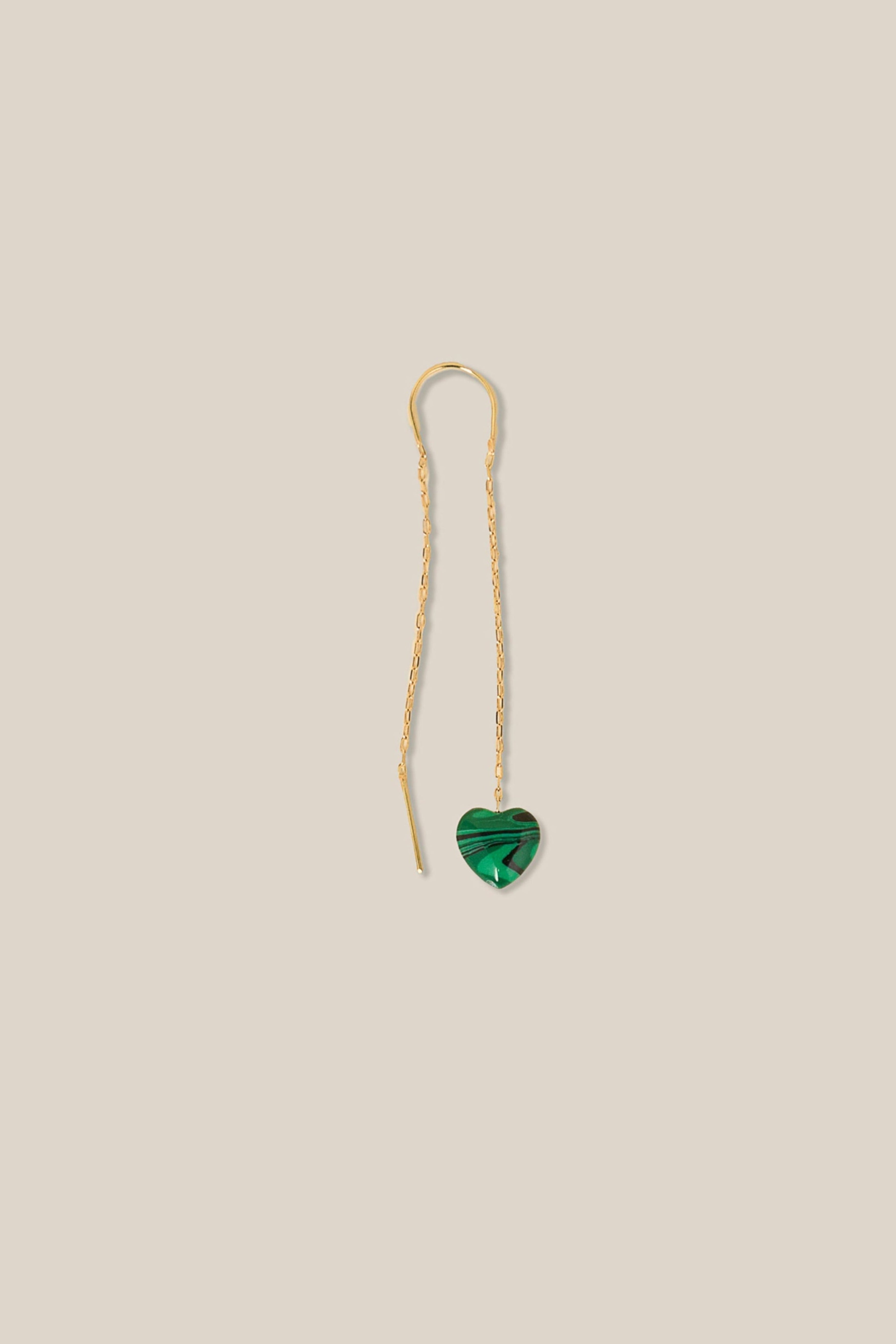 One Green Heart Earring - Yellow Gold