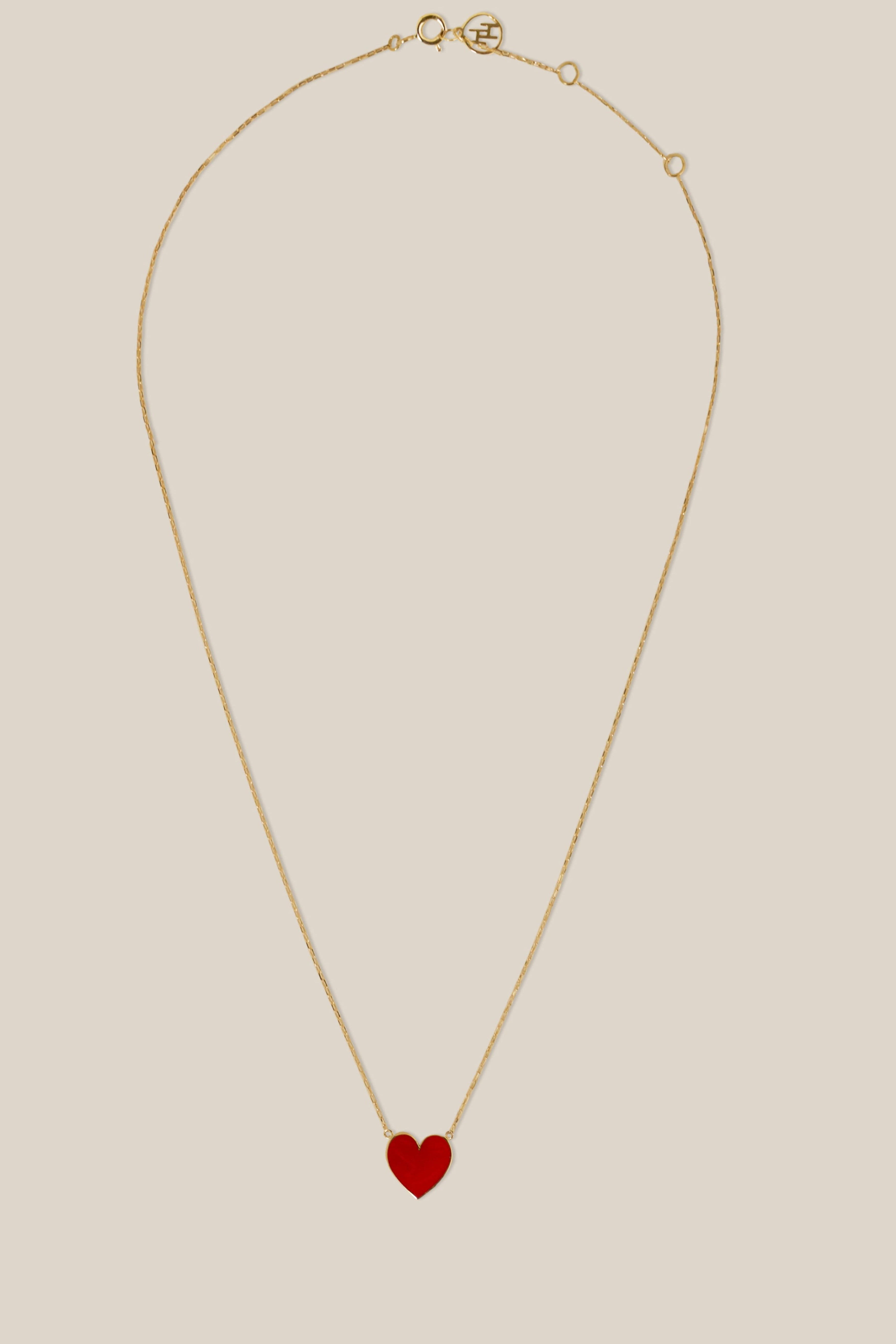 Red Enamel Heart Necklace - Yellow Gold