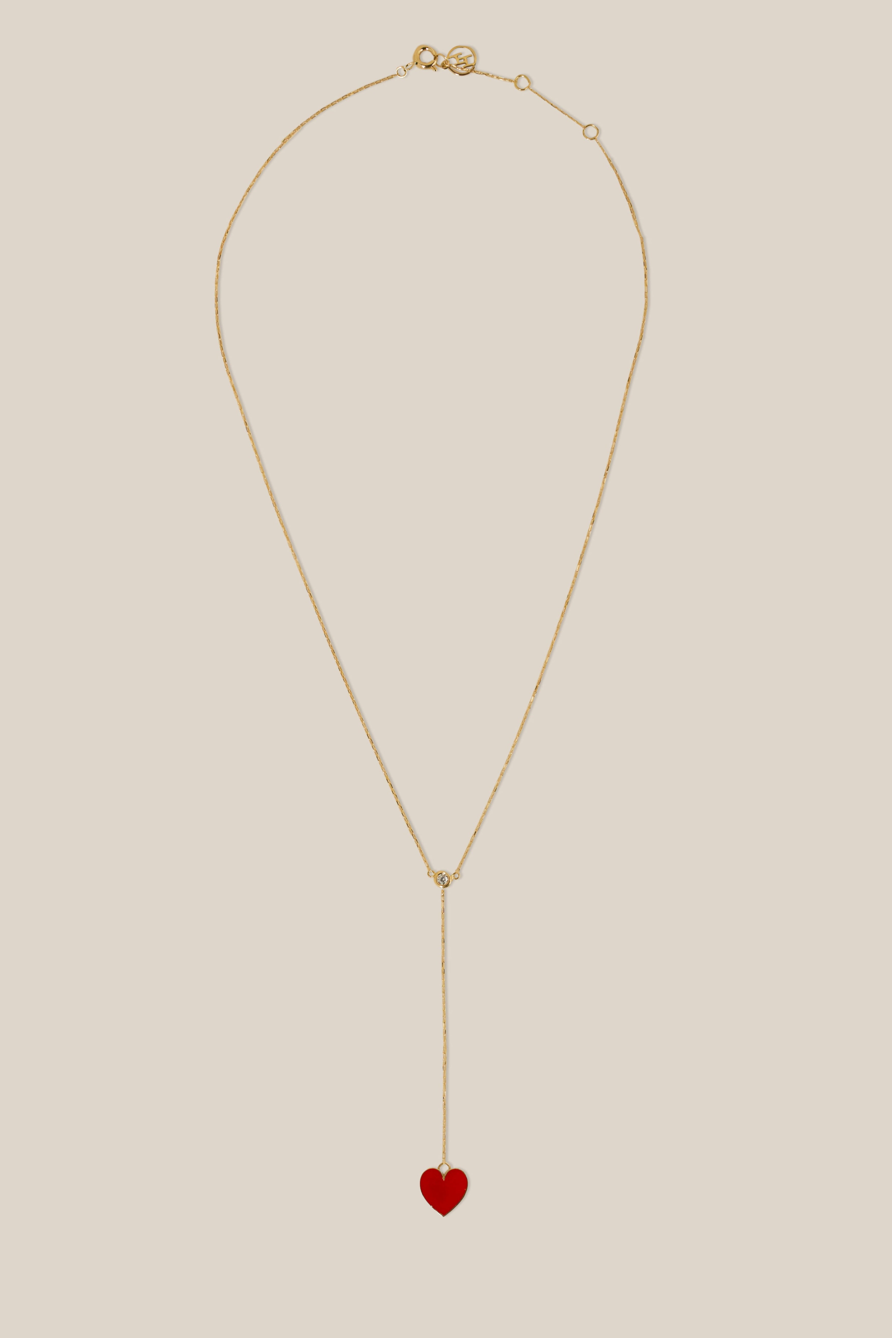 Zircon and Red Heart long Necklace - Yellow Gold