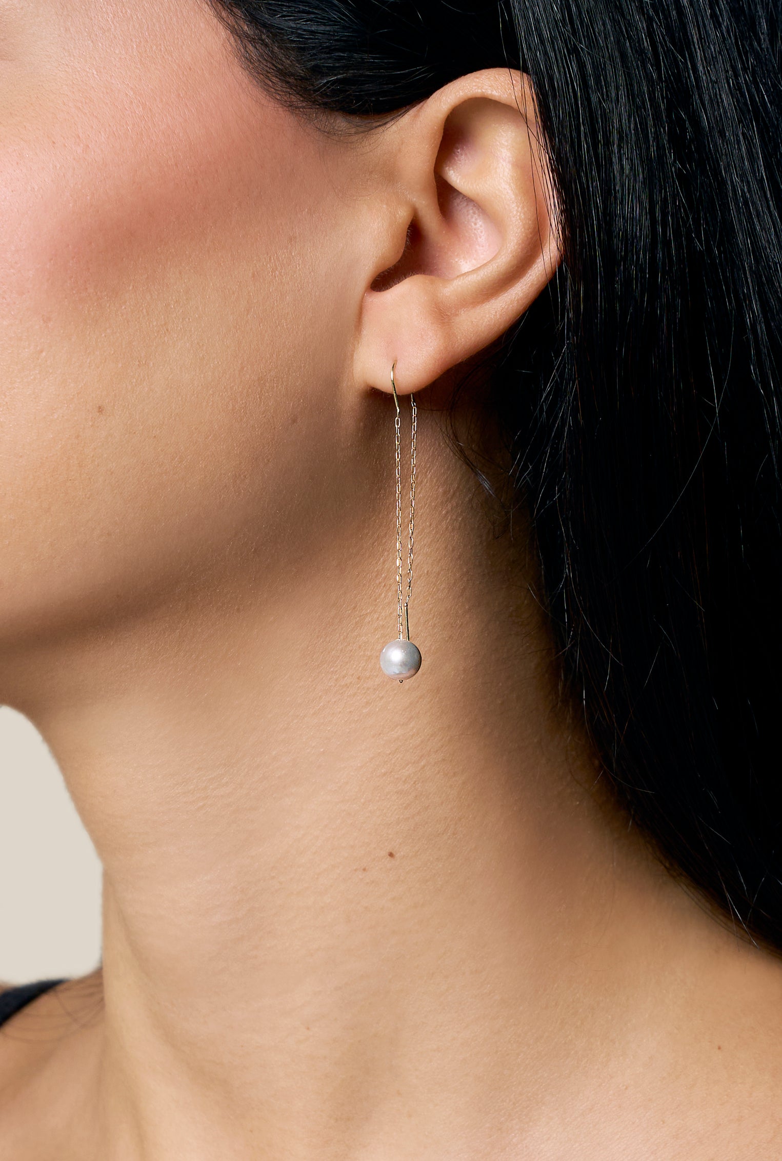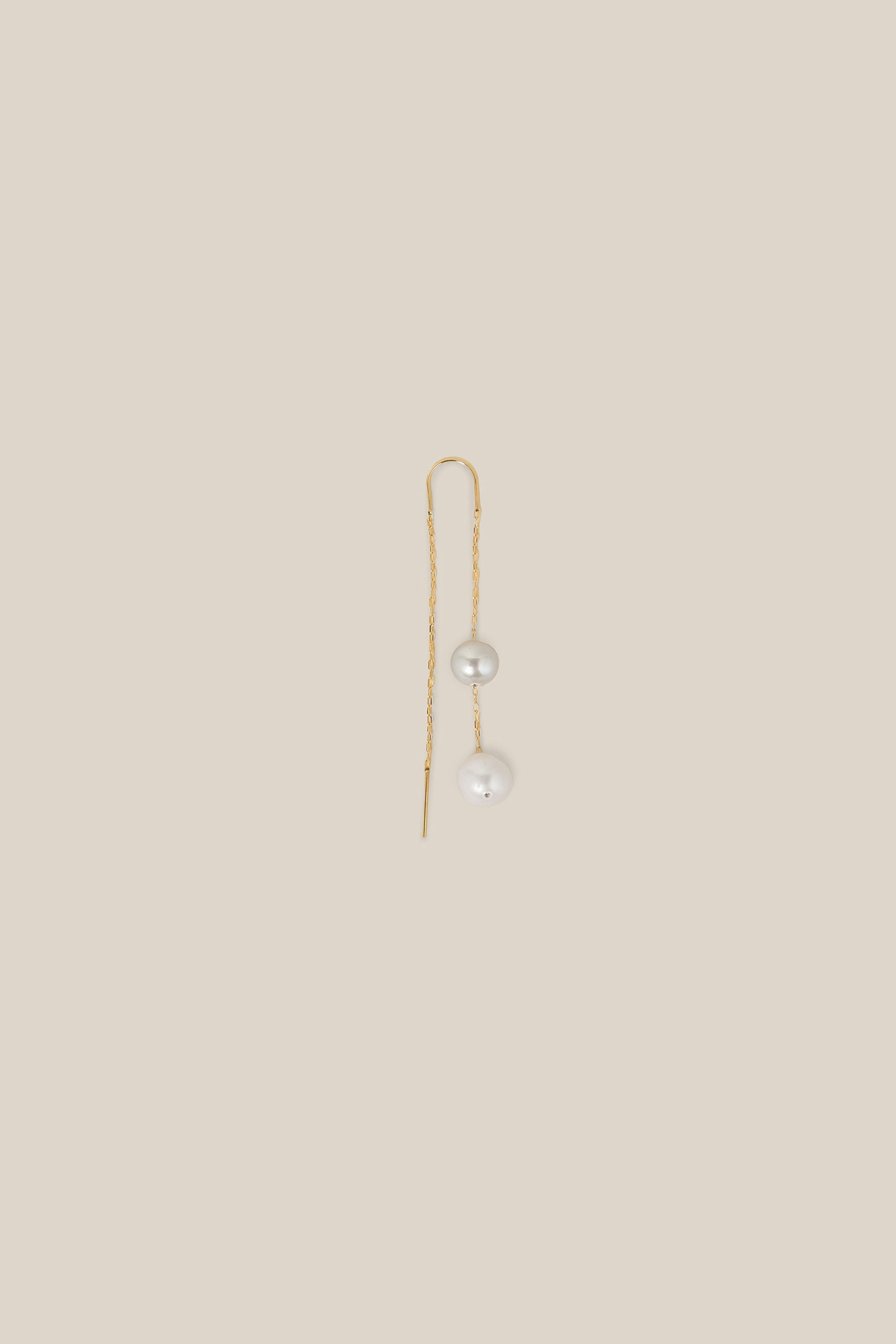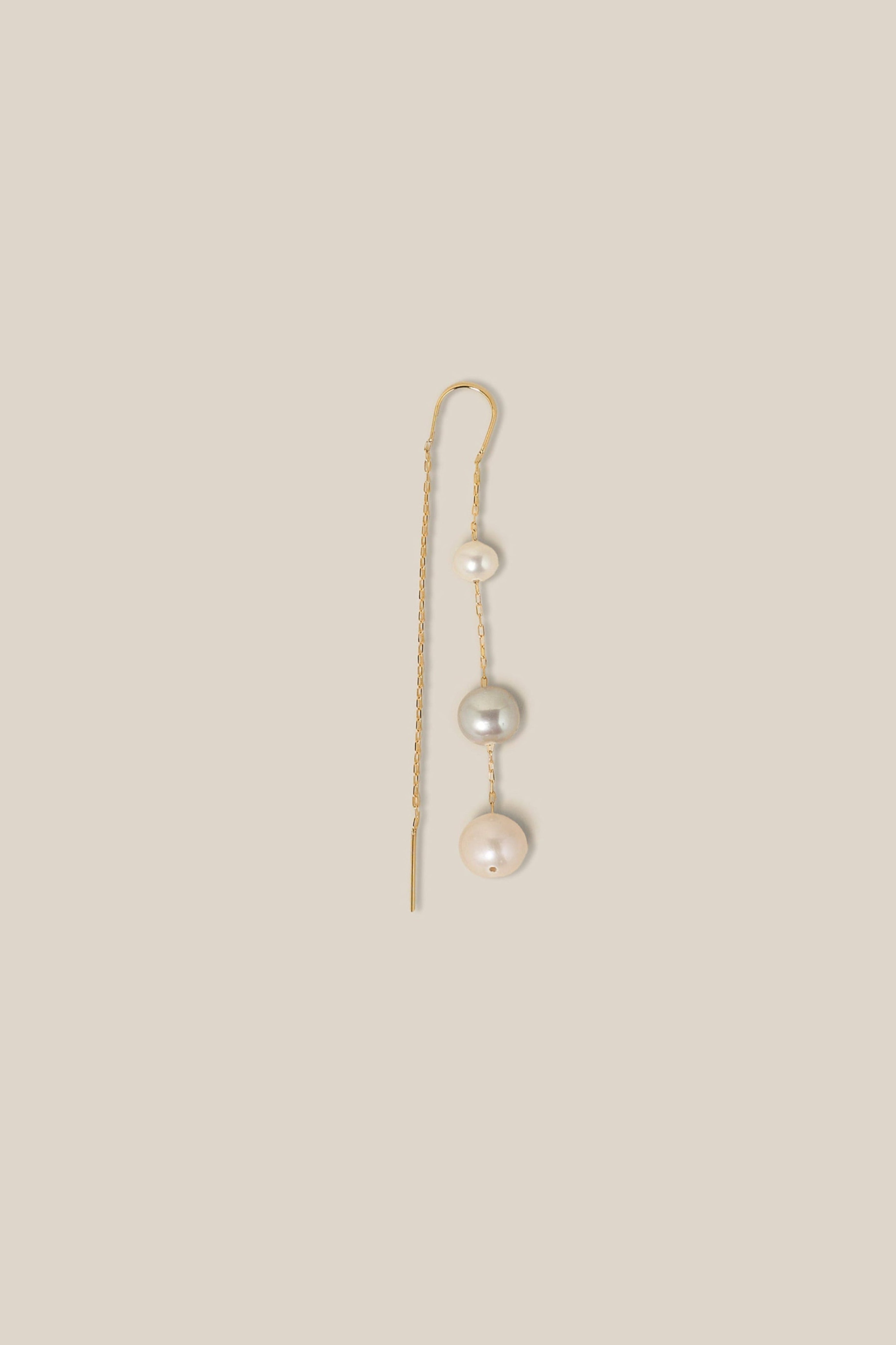 One Grey Pearl Earring - Yellow Gold