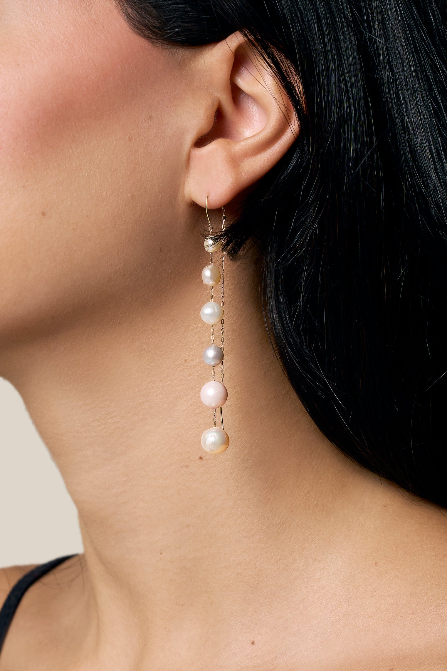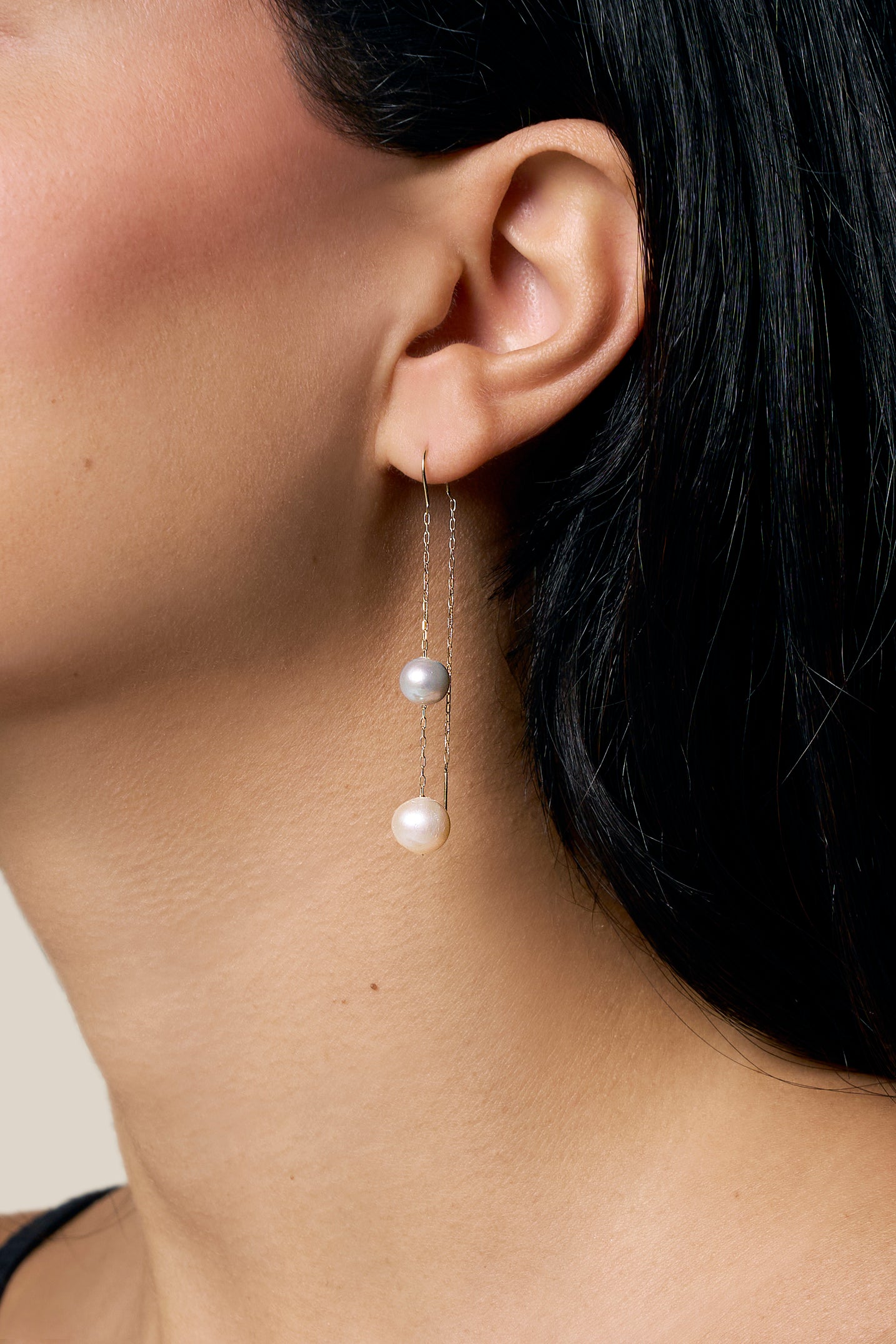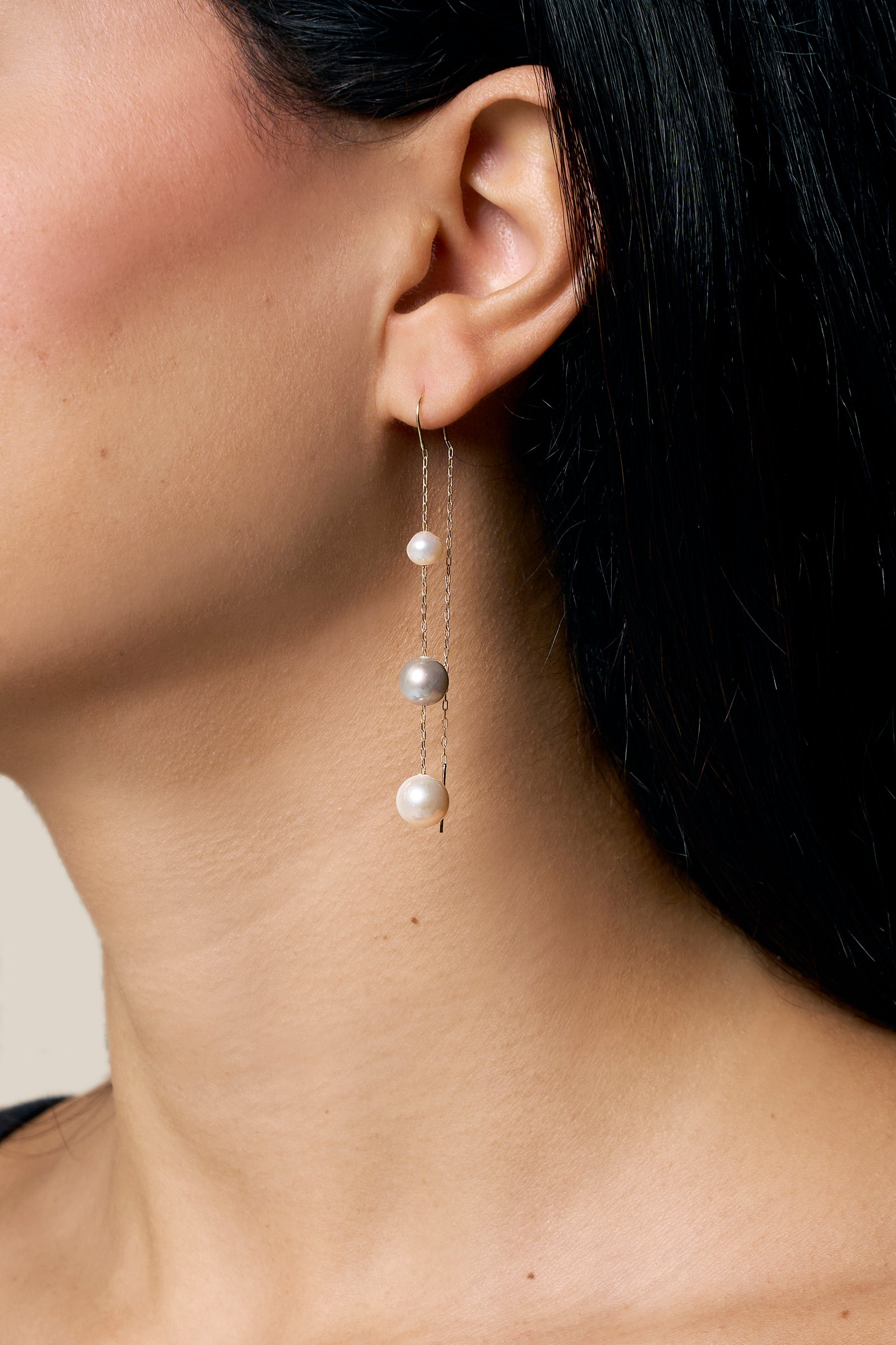 Two Muti-color Pearls Earring - Yellow Gold