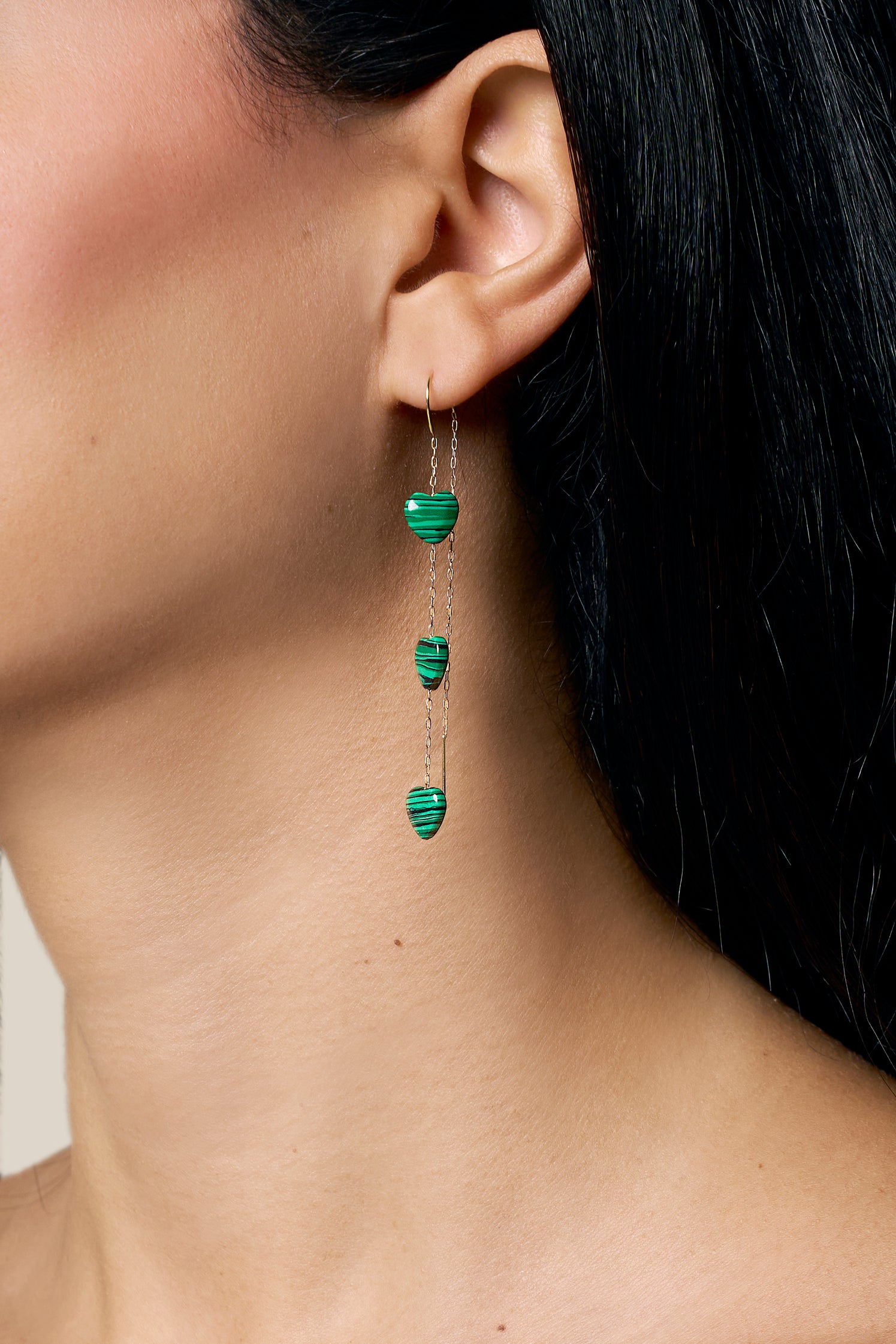 Aqua Hearts and Pearl Long Necklace - Yellow Gold