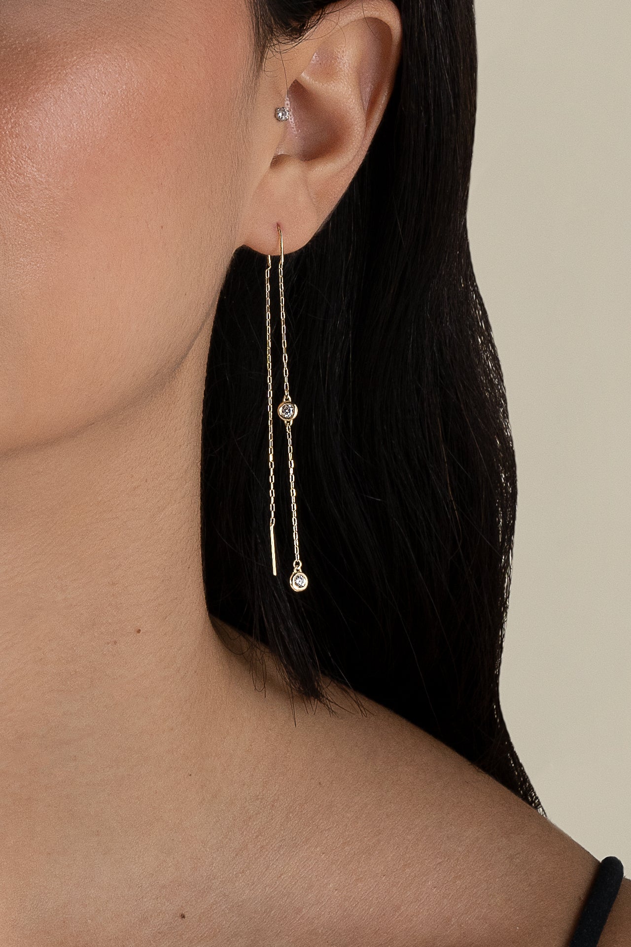 Two Zircon Earring - Yellow Gold